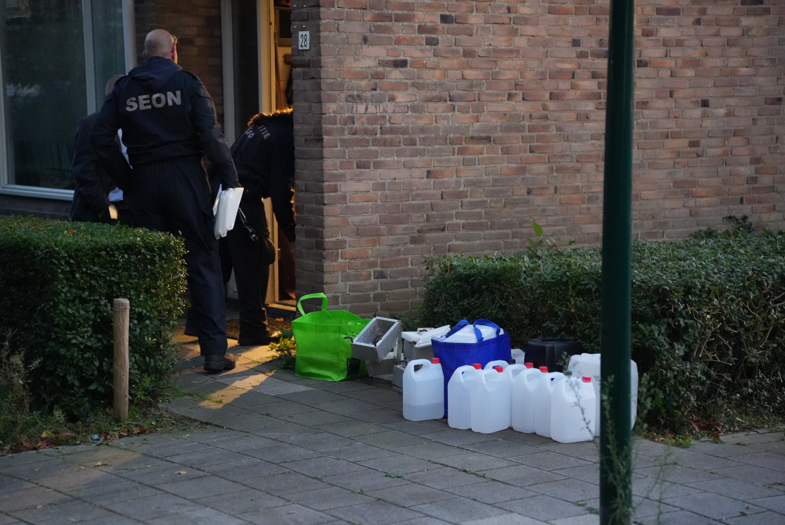 Het aantal lege verpakkingen wees erop dat er waarschijnlijk veel meer cocaïne versneden is dan er op het moment van de inval aanwezig was. Een 34-jarige man is aangehouden.