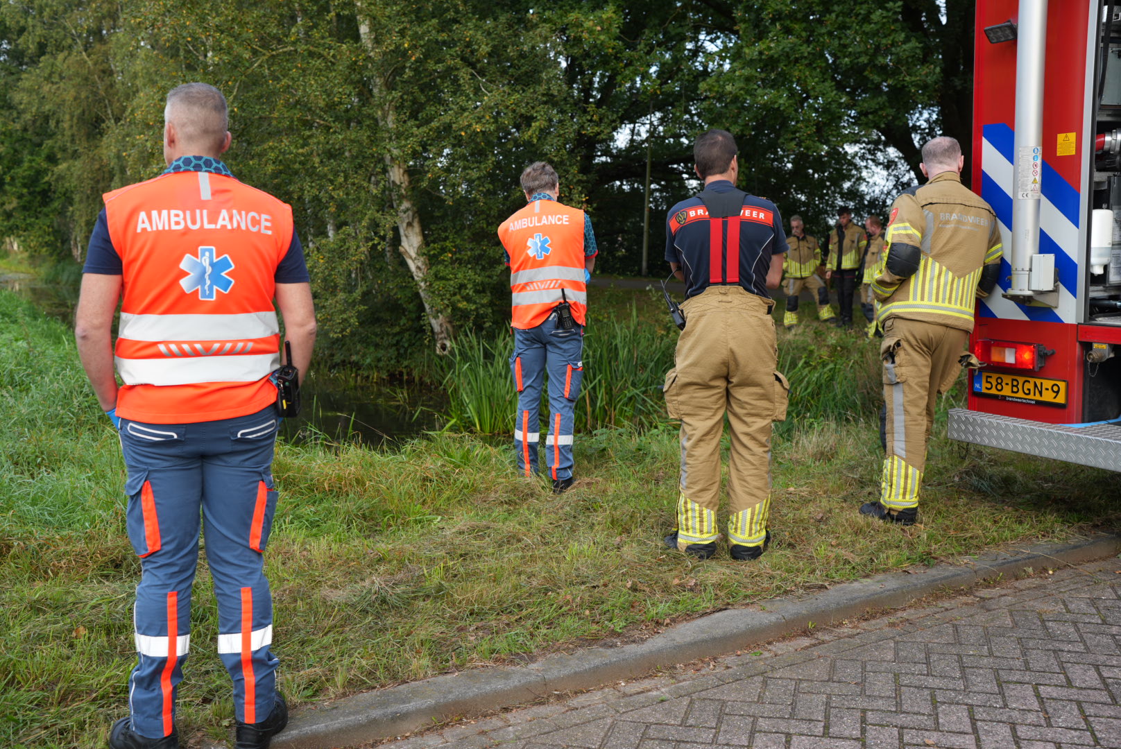 Hulpdiensten werden massaal gealarmeerd. De brandweer van Sprang-Capelle, die als eerste ter plaatse was, haalde de fiets uit het water en doorzocht de sloot met waadpakken, maar trof niets aan.