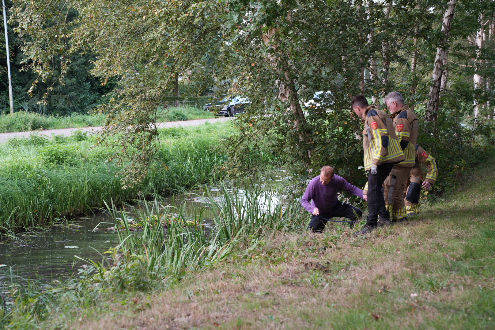Hulpdiensten werden massaal gealarmeerd. De brandweer van Sprang-Capelle, die als eerste ter plaatse was, haalde de fiets uit het water en doorzocht de sloot met waadpakken, maar trof niets aan.