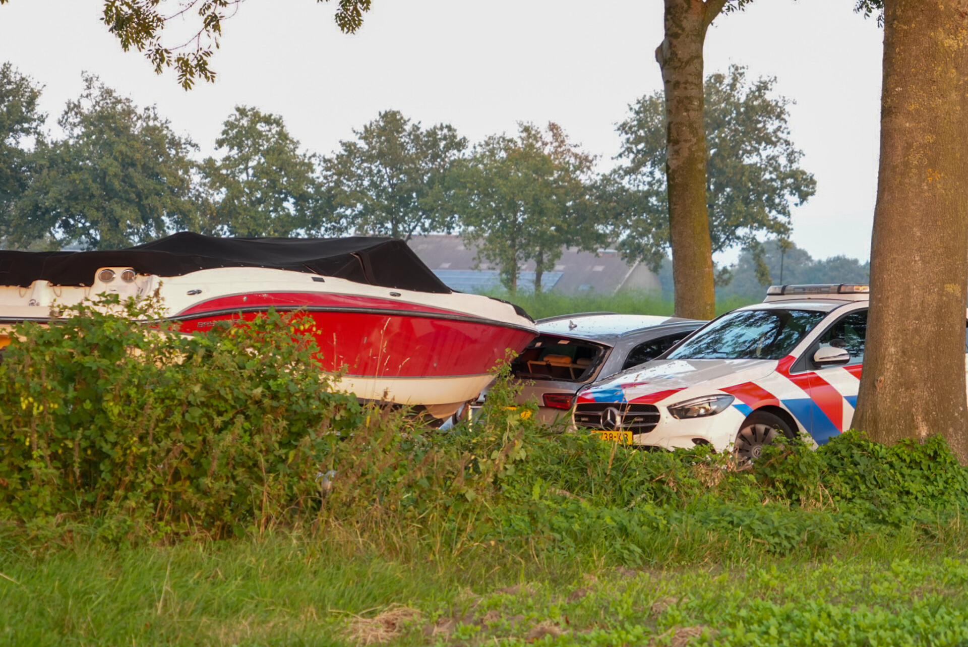 Auto met boot botst op politiewagen, agenten lossen waarschuwingsschoten