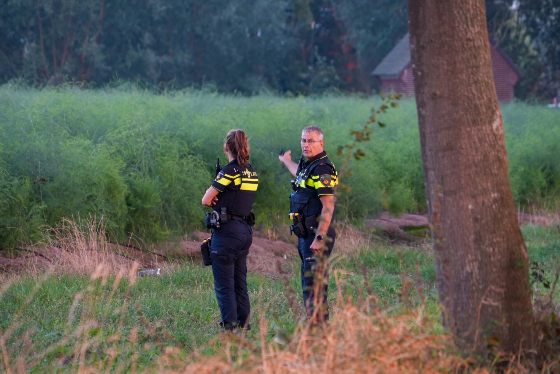 De auto botste op de Laren in Erp frontaal op een politievoertuig, waarna de schoten werden gelost. De bestuurder van de auto vluchtte vervolgens een weiland in.