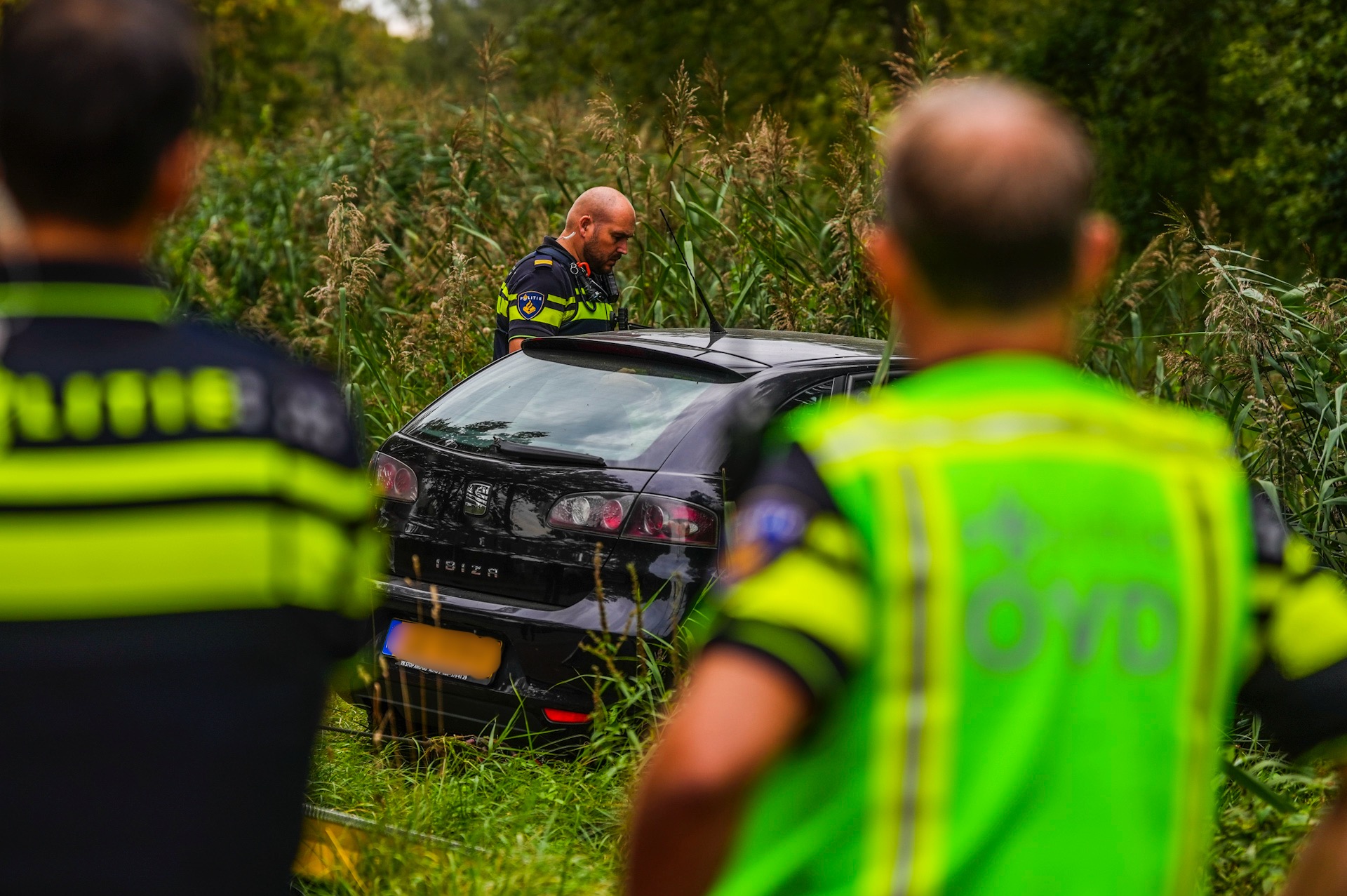 Het voertuig stak een fietspad over en eindigde in een sloot. Aanvankelijk leek er weinig aan de hand, totdat getuigen meldden dat de minderjarige vrouw, en niet de man, achter het stuur zat. Het stel leek bovendien van het voertuig weg te lopen.