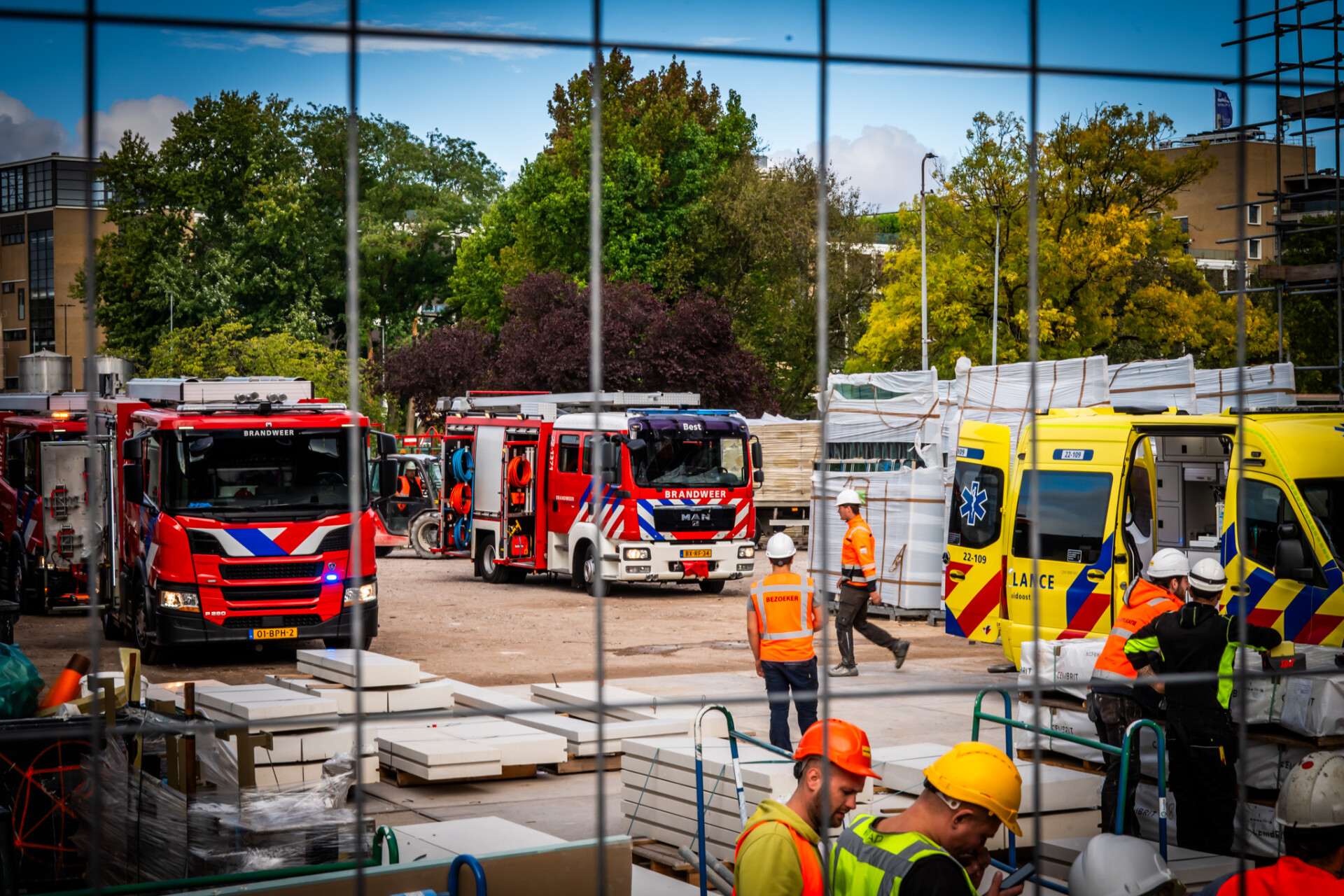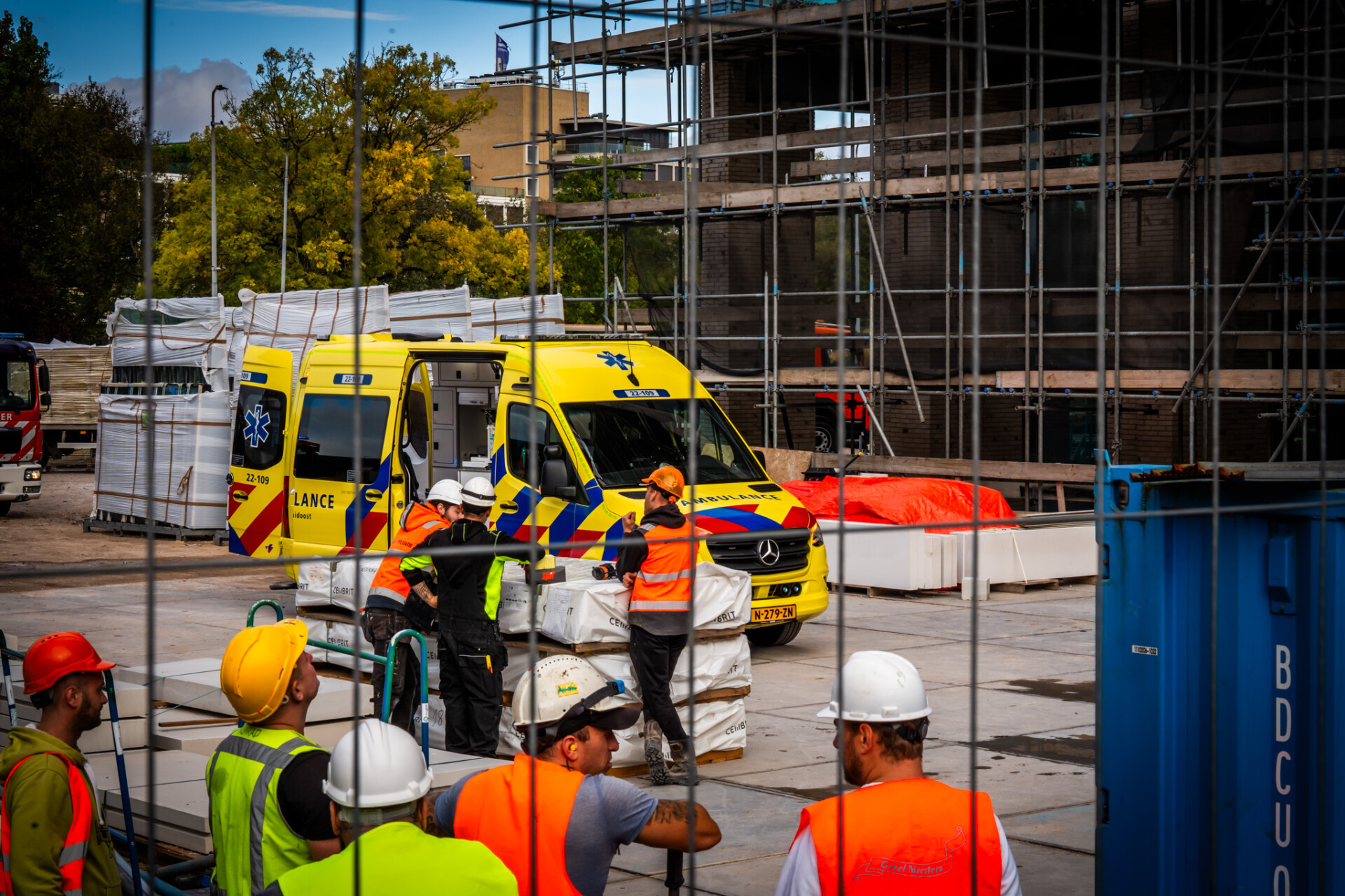 De monteur kwam met zijn benen bekneld te zitten onder de lift. Een mobiel medisch team was snel ter plaatse op de bouwplaats.