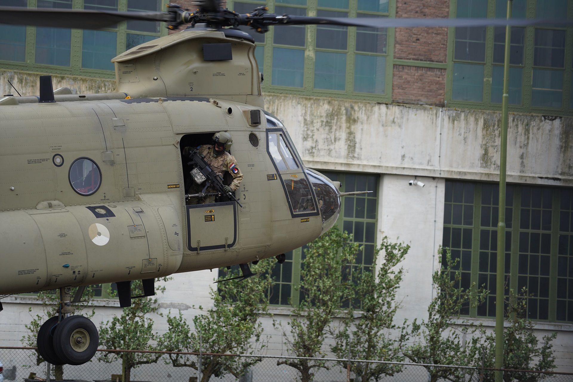 Geplaatst op 24 september 2024, om 11:07 uurGEERTRUIDENBERG – Dinsdagochtend hield Defensie een grote oefening in Geertruidenberg en Raamsdonksveer, waarbij zelfs de burgemeester, Marian Witte, deelnam. Ze werd samen met de directrice van het Dongemond College zogenaamd ‘gegijzeld’ door acteurs. De oefening omvatte vier helikopters, waaronder Cougars en Chinooks, en een politiehelikopter.