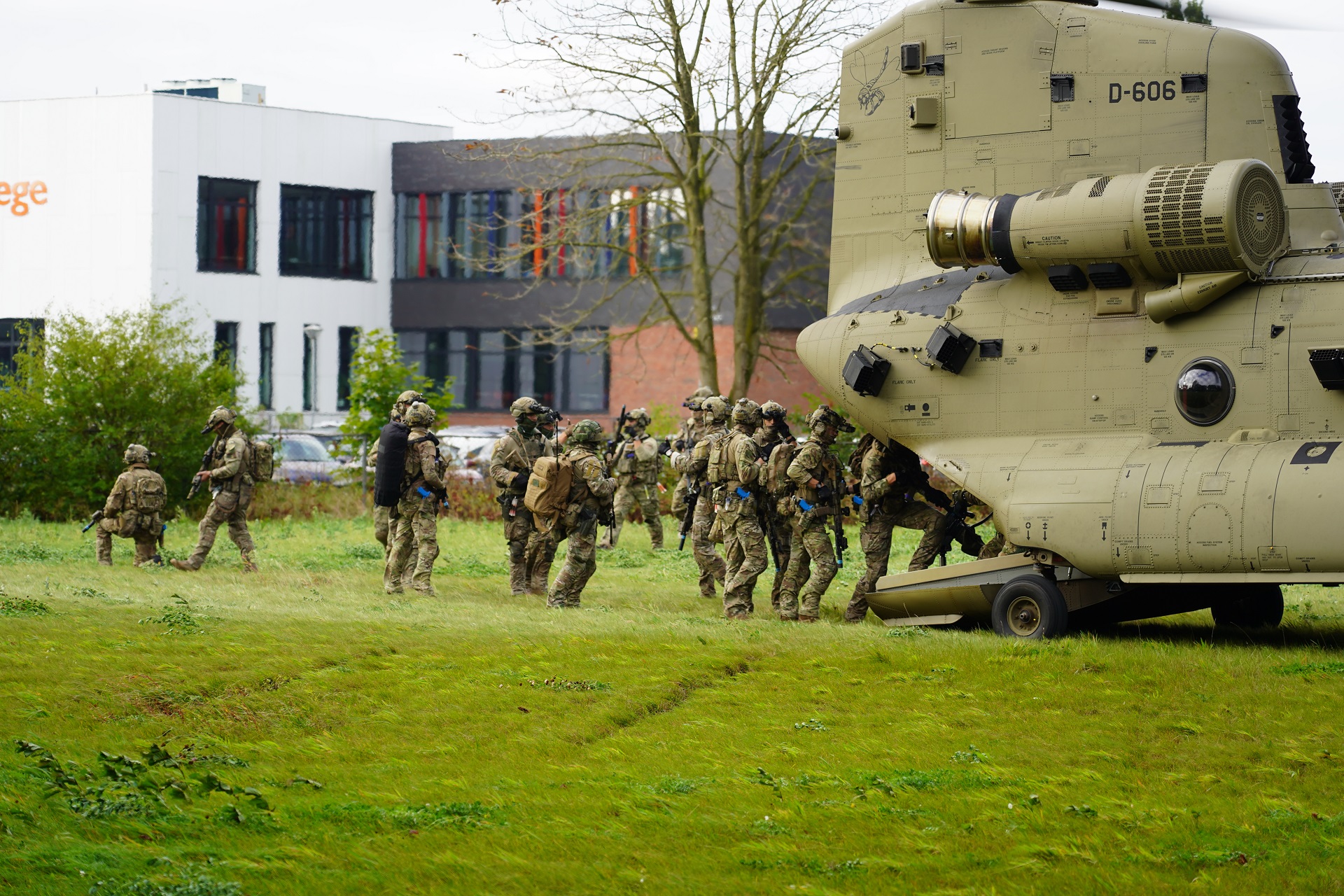 De oefening begon bij de Dongecentrale en verplaatste zich later naar het Dongemond College, waar militairen vanuit een helikopter via touwen op het schoolplein afdaalden. Rond 09:40 uur werden beide vrouwen ‘bevrijd’. Dit alles maakt deel uit van een 20 weken durende training voor helikoptervliegers.