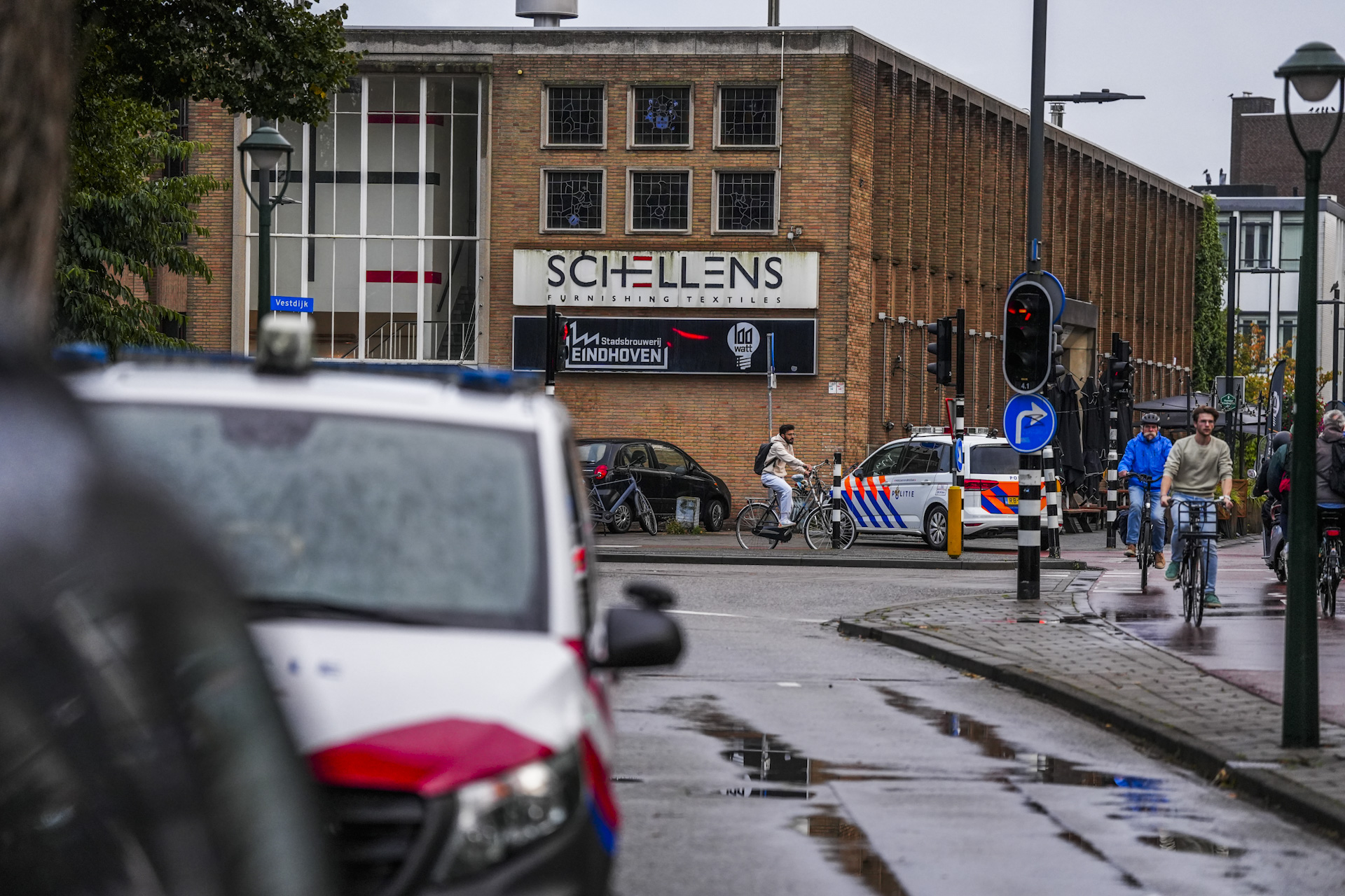 Buiten was er een sterke politieaanwezigheid, terwijl agenten door de binnenstad op zoek zijn naar de verdachten. De situatie trok veel aandacht van voorbijgangers, terwijl de politie de omgeving doorzoekt in een poging de daders op te sporen.