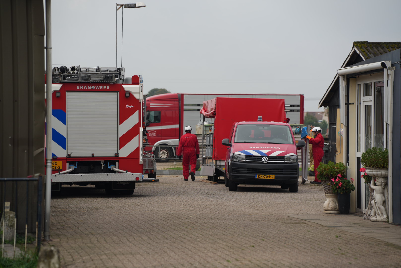 Omdat het paard niet meer op zijn benen kon staan, moest het met een loader uit de stal worden gehaald, maar deze bleek te hoog te zijn. De brandweer verwijderde de veiligheidskooi, zodat ze toch naar binnen konden.