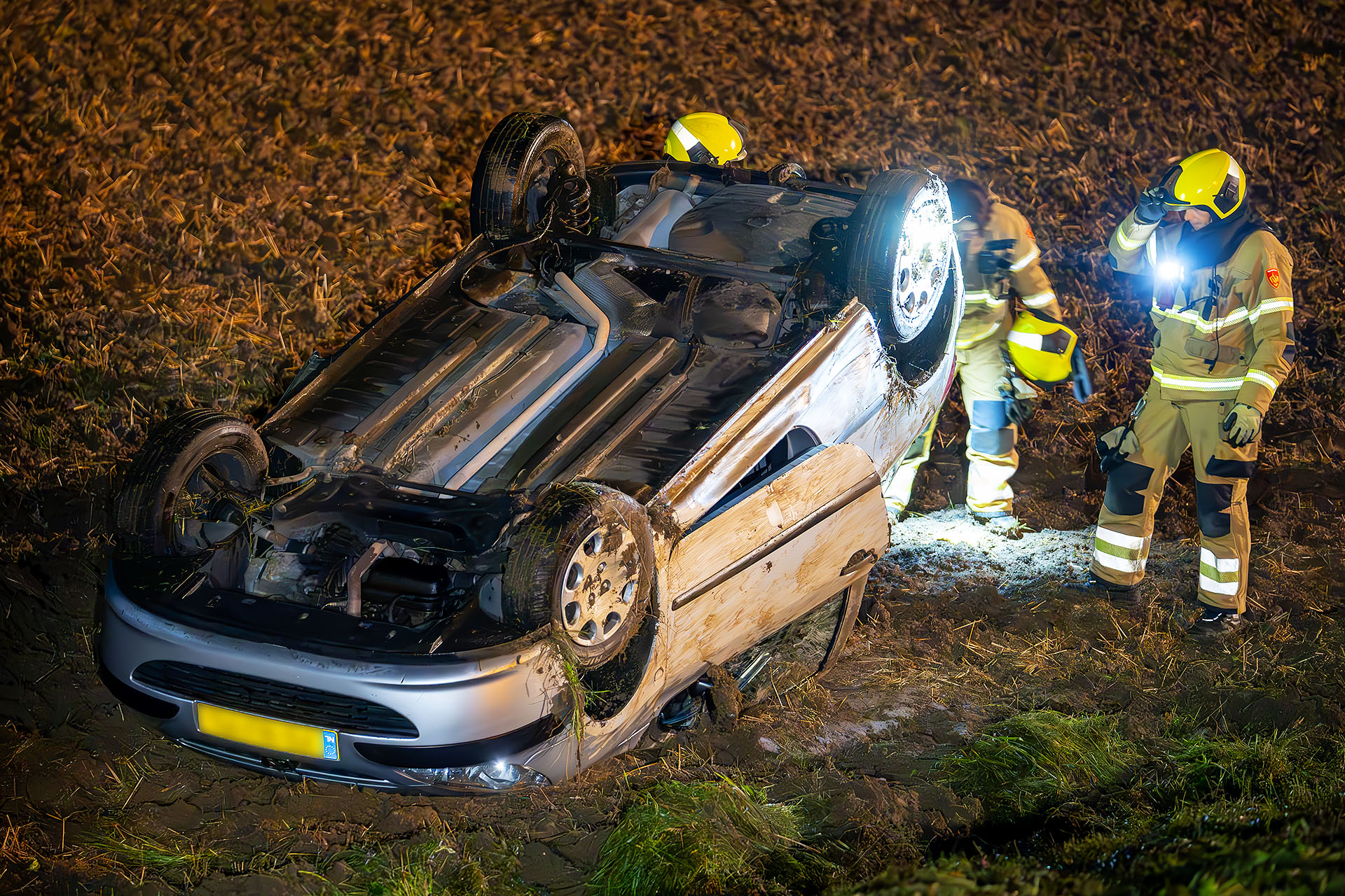 Auto rolt van dijk, bestuurder slechts lichtgewond