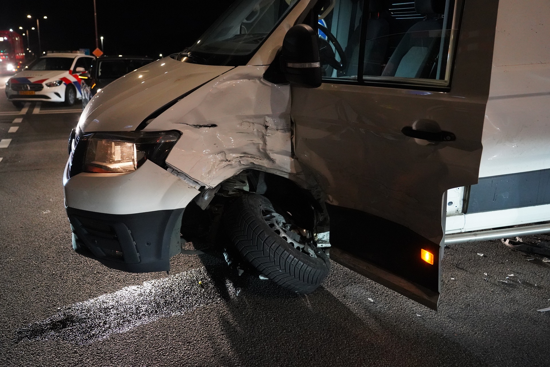 Veel schade na botsing tussen bestelbussen, chauffeur gewond