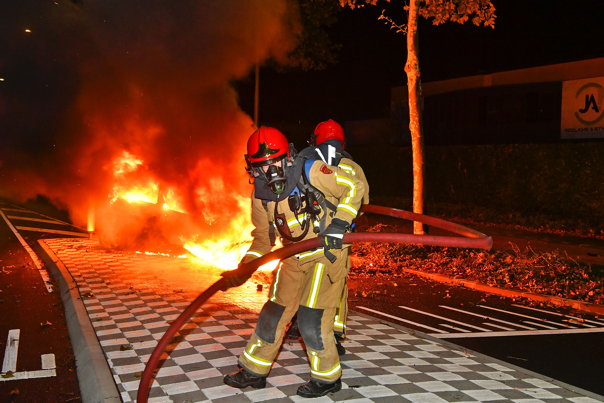 Auto vliegt in brand na botsing tegen boom, vrouw gewond
