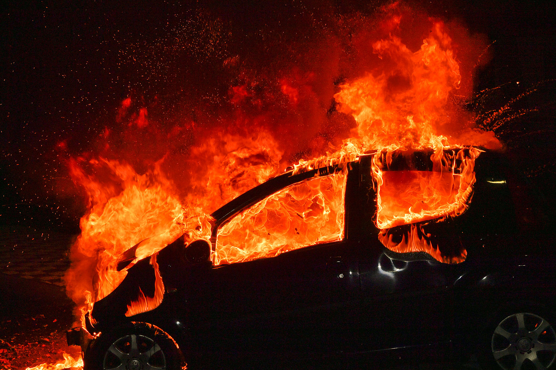 Auto vliegt in brand na botsing tegen boom, vrouw gewond