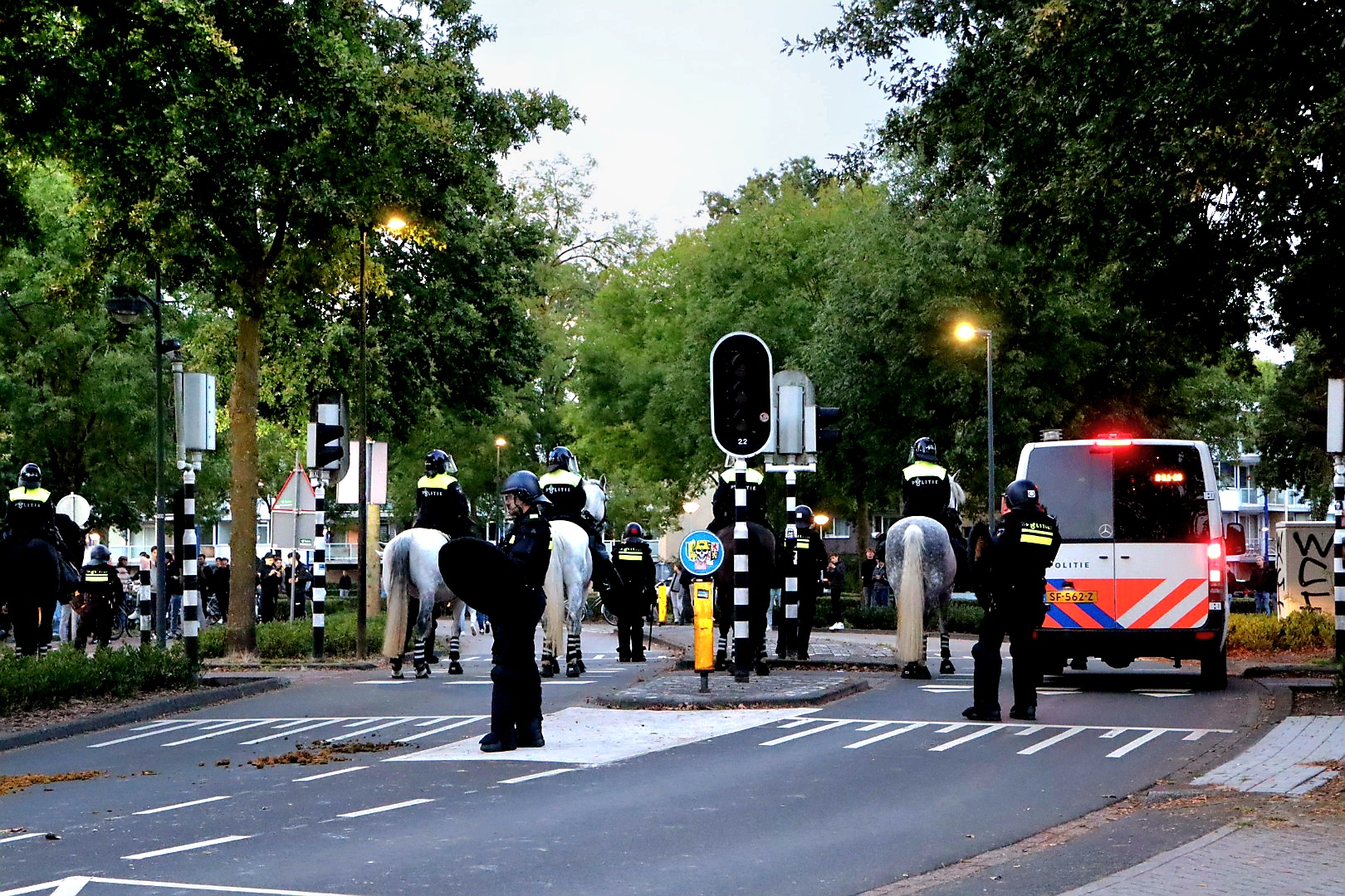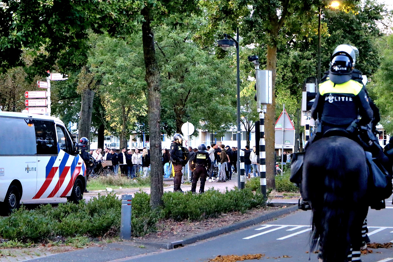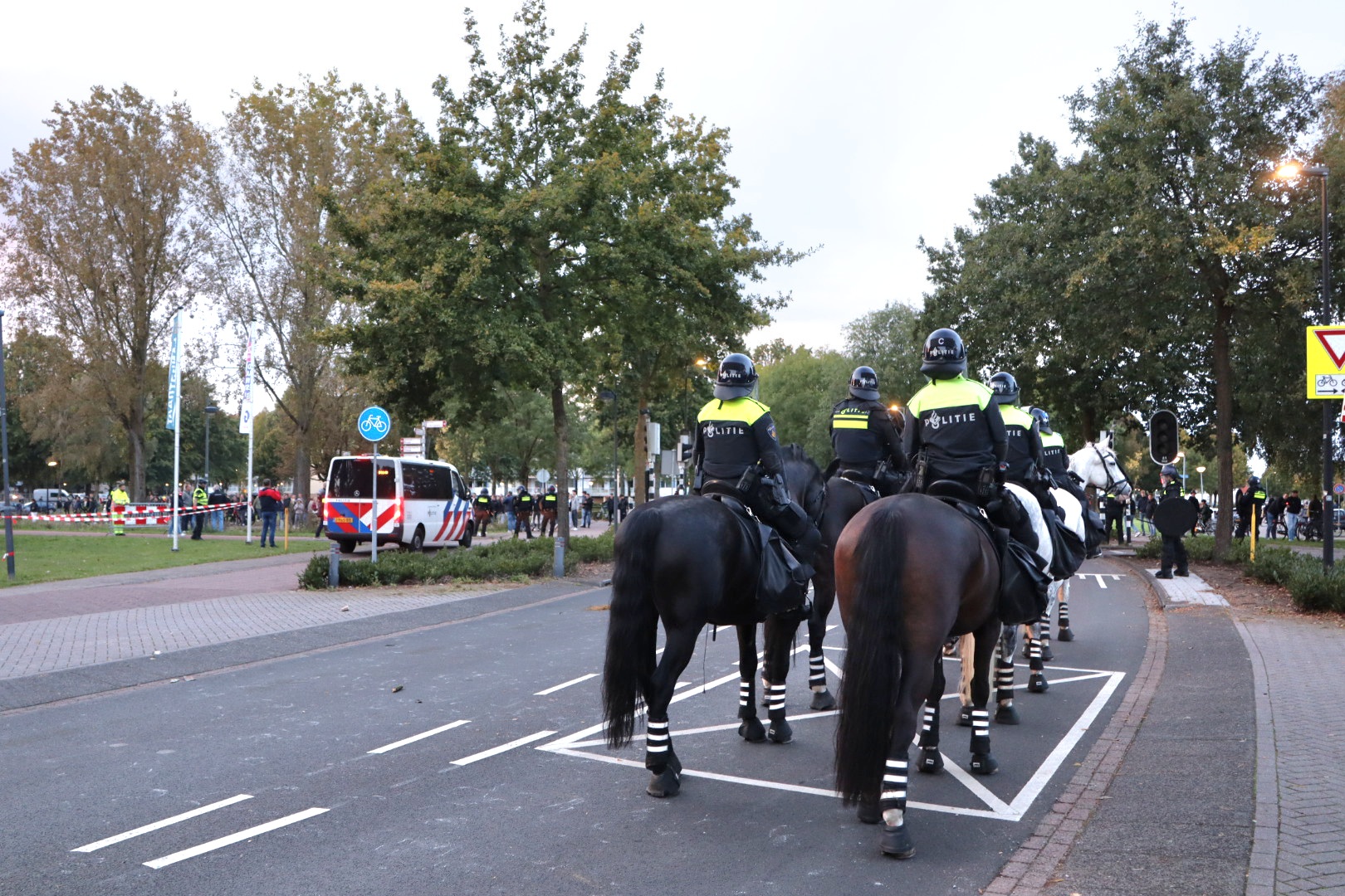 Mobiele Eenheid en politiepaarden ingezet na afloop wedstrijd RKC Waalwijk-Ajax