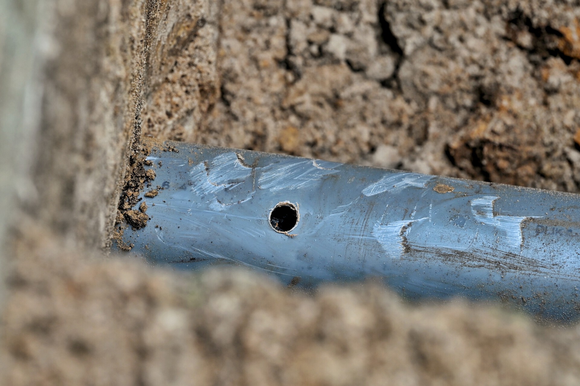 Een pin werd per ongeluk door een mantelbuis gestoken, waardoor gas twee woningen binnendrong.