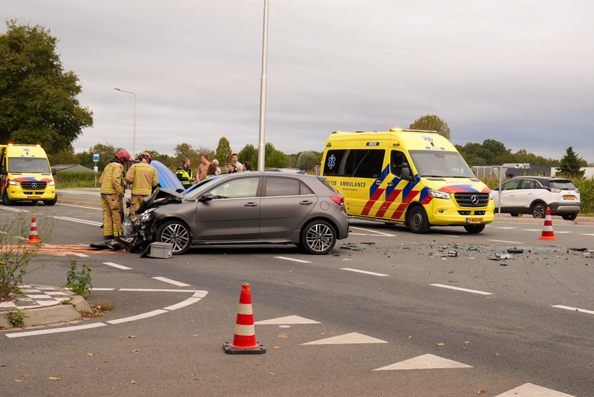 De aanrijding ontstond doordat een van de auto’s de voorrangsweg opreed, waardoor de andere bestuurder niet meer kon uitwijken. Beide auto’s hebben aanzienlijke schade opgelopen en worden door een bergingsbedrijf weggesleept. De brandweer werd ingeschakeld omdat er vermoedelijk een persoon bekneld zat en omdat een van de voertuigen elektrisch was. De brandweer heeft de situatie veiliggesteld.