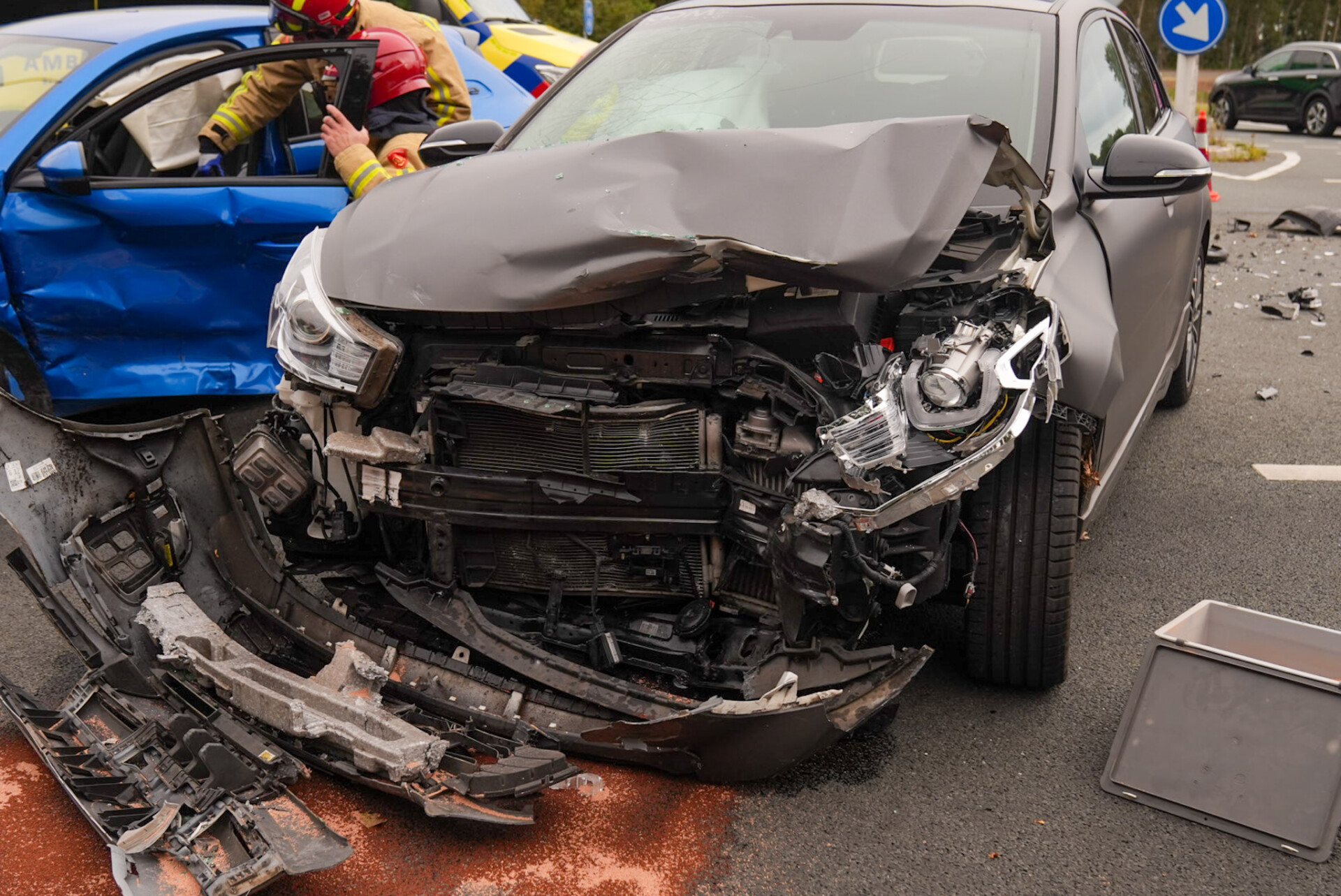 De aanrijding ontstond doordat een van de auto’s de voorrangsweg opreed, waardoor de andere bestuurder niet meer kon uitwijken. Beide auto’s hebben aanzienlijke schade opgelopen en worden door een bergingsbedrijf weggesleept. De brandweer werd ingeschakeld omdat er vermoedelijk een persoon bekneld zat en omdat een van de voertuigen elektrisch was. De brandweer heeft de situatie veiliggesteld.