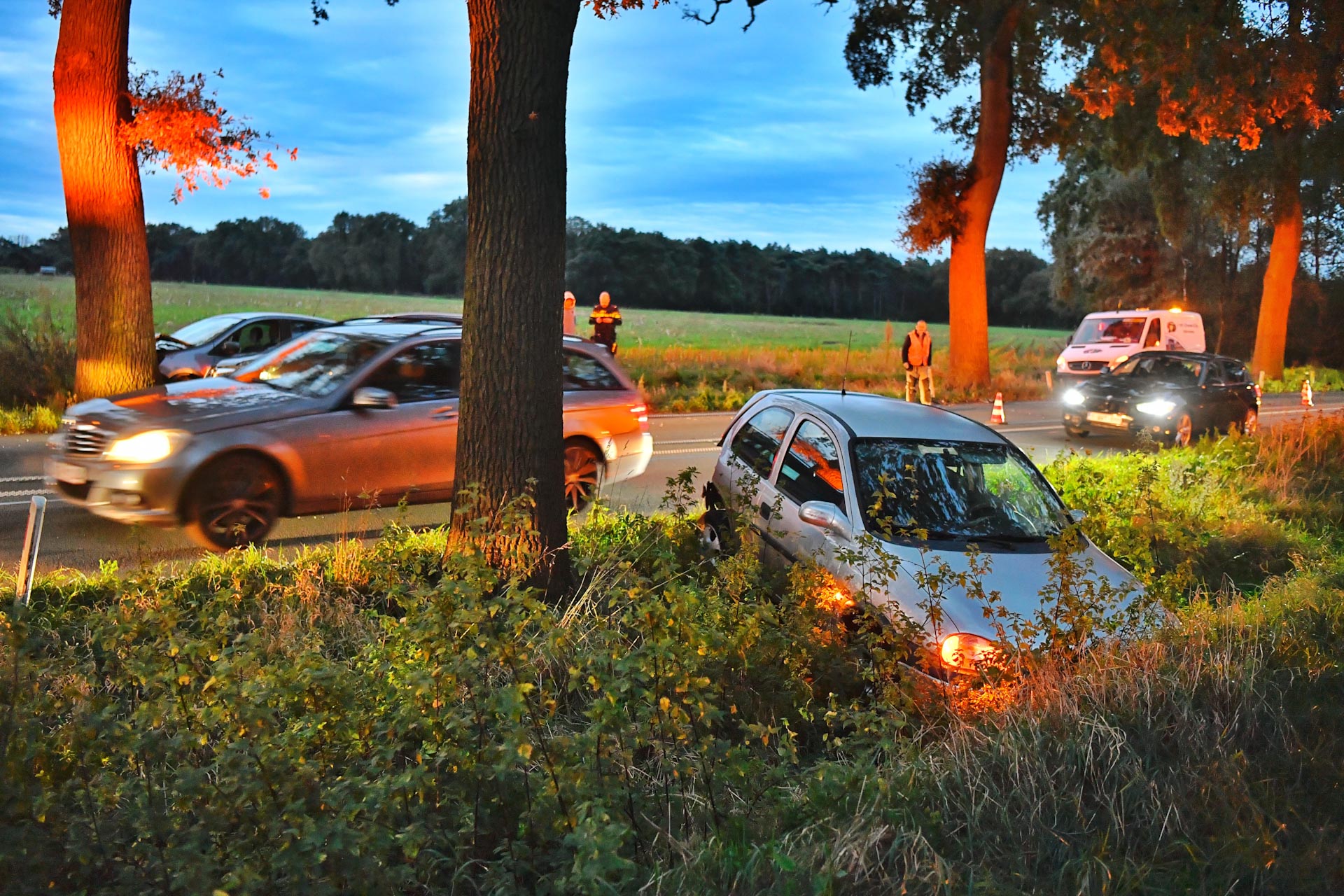 De botsing gebeurde in de richting van Nederland vanuit België. Eén van de auto’s belandde na de aanrijding in de sloot aan de linkerkant van de weg.