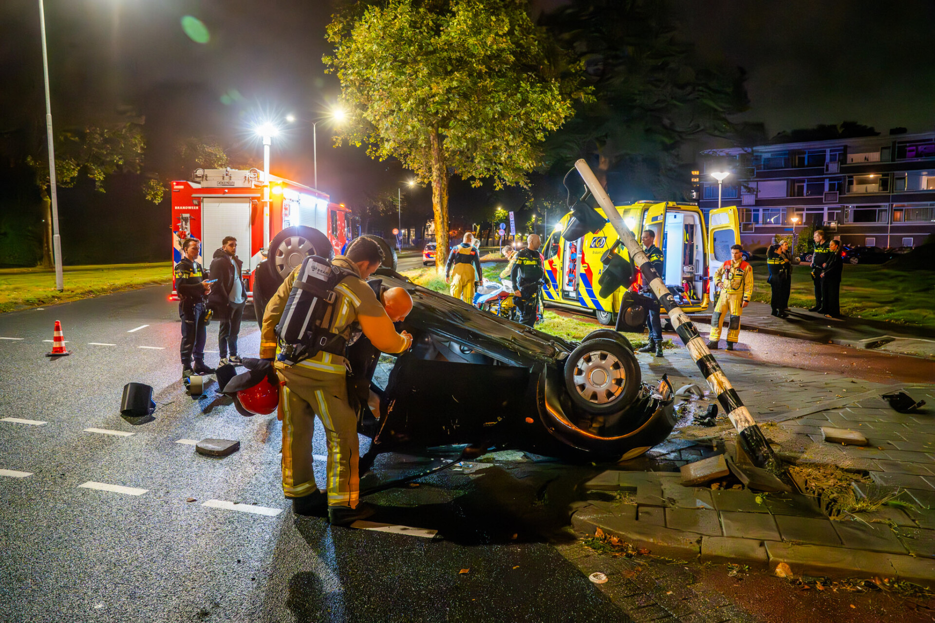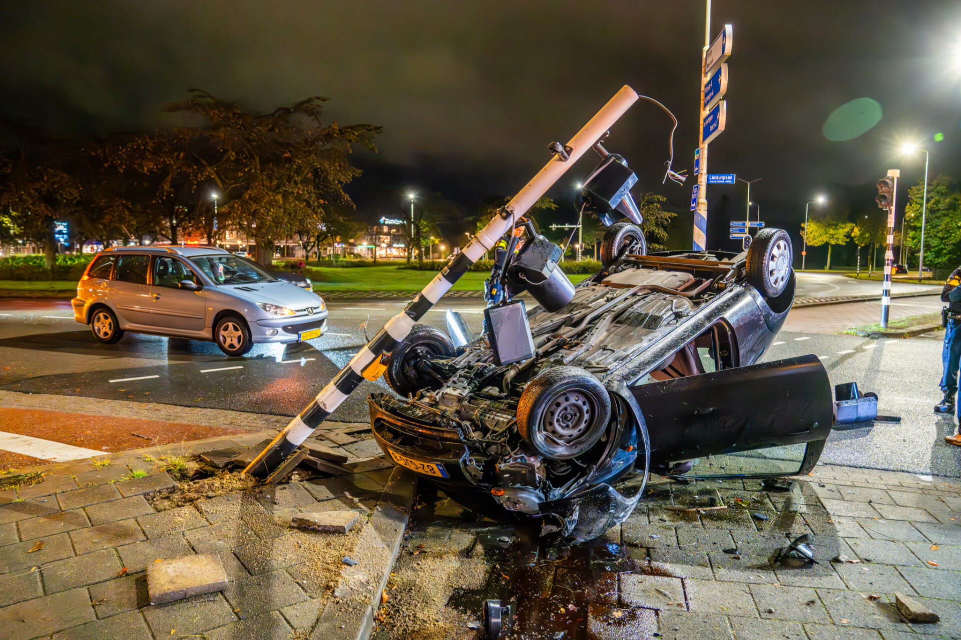 Geplaatst op 1 oktober 2024, om 07:59 uurEINDHOVEN – Maandagochtend raakte een automobilist op de kruising van de Karel de Grotelaan en de Limburglaan betrokken bij een ernstig ongeval. De bestuurder botste tegen een lichtmast en een verkeerslicht, waarna de auto over de kop sloeg.
