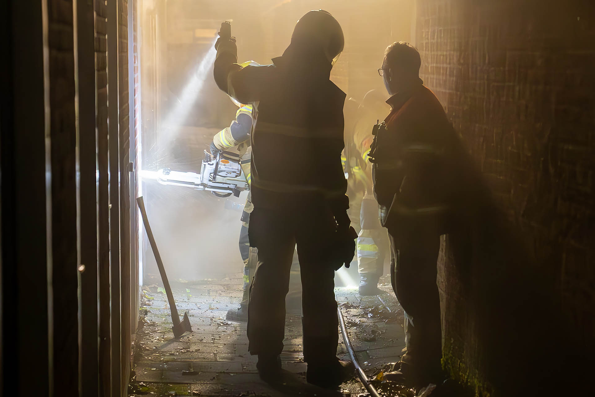 Brandweerlieden rolden zowel door de woning als door een brandgang een brandslang uit om de brand te kunnen blussen. Wat er precies in brand stond en hoe groot de aangerichte schade is is bij ons niet bekend.