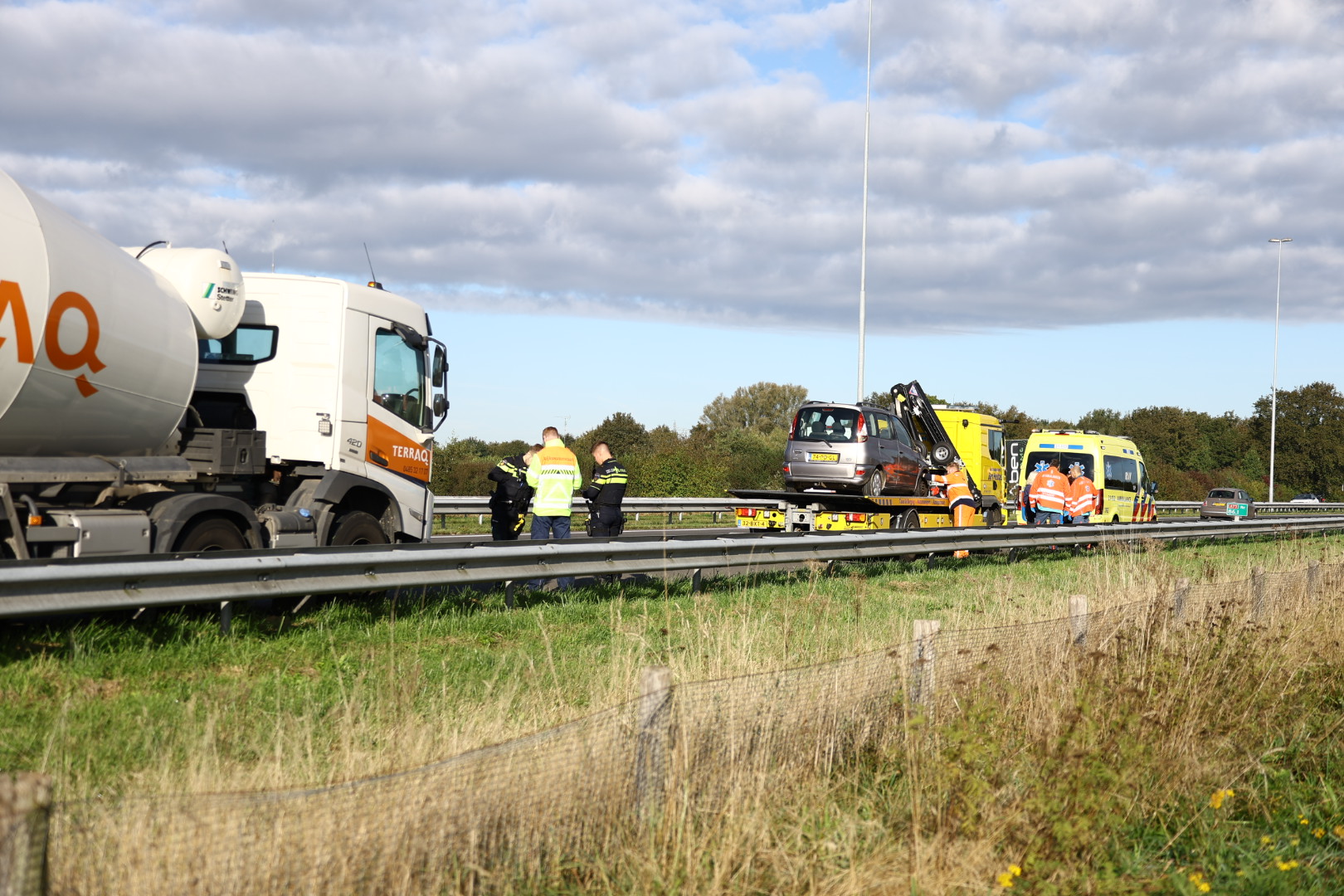 Auto rijdt tegen vrachtwagen op A73: twee gewonden naar het ziekenhuis