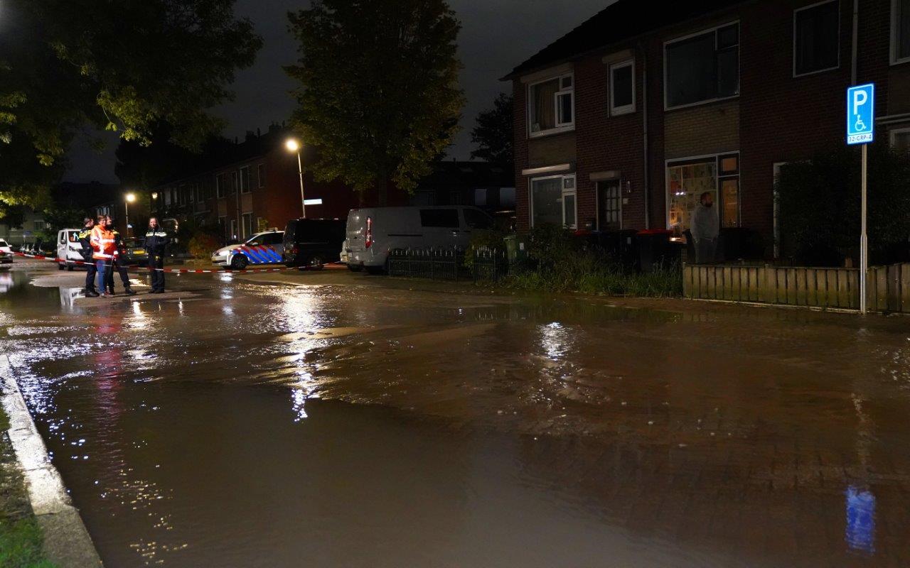 Een modderpoel bleef achter, en een aannemersbedrijf is bezig met de reparaties, die tot in de ochtend duren. 34 woningen zitten zonder water.