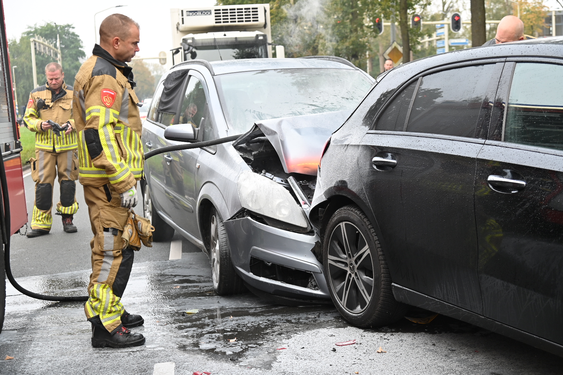 Veel schade na kop-staart botsing, kinderen in ambulance nagekeken