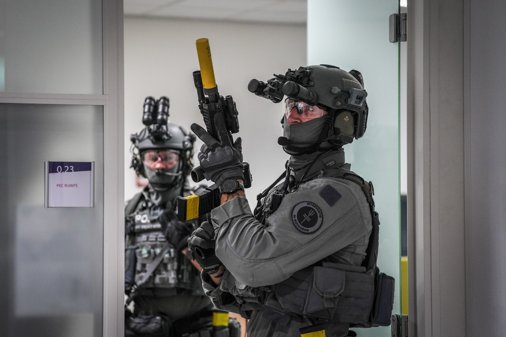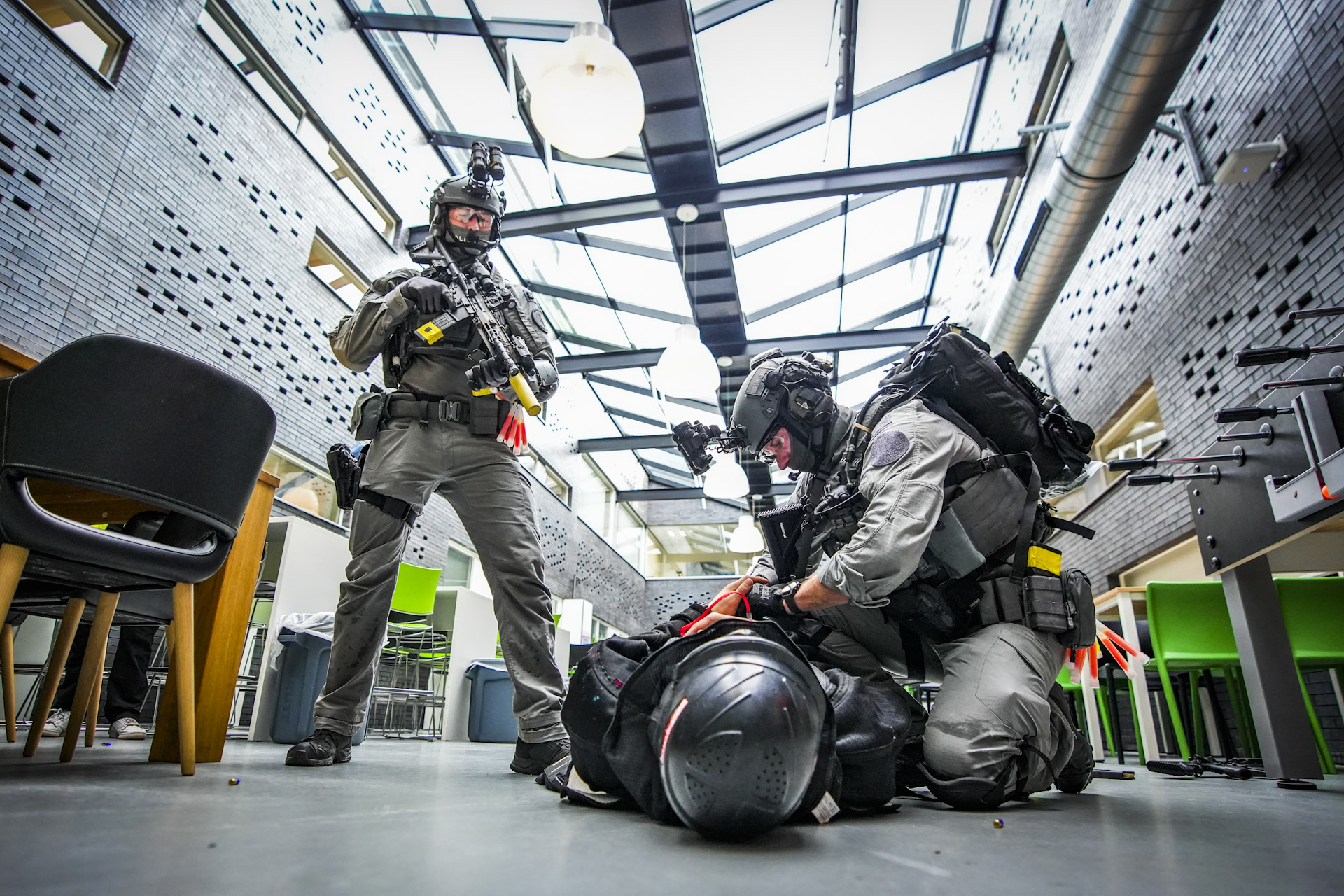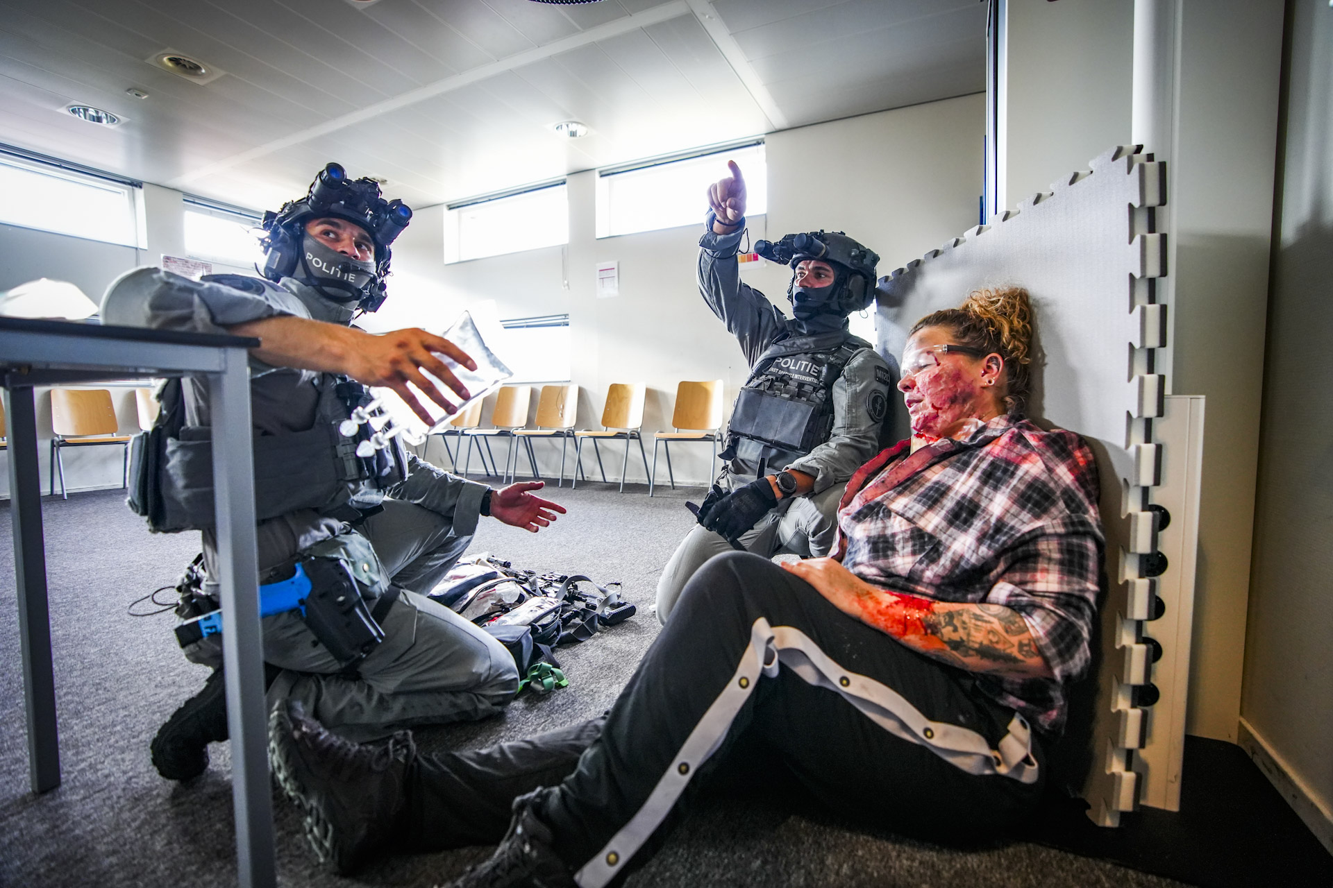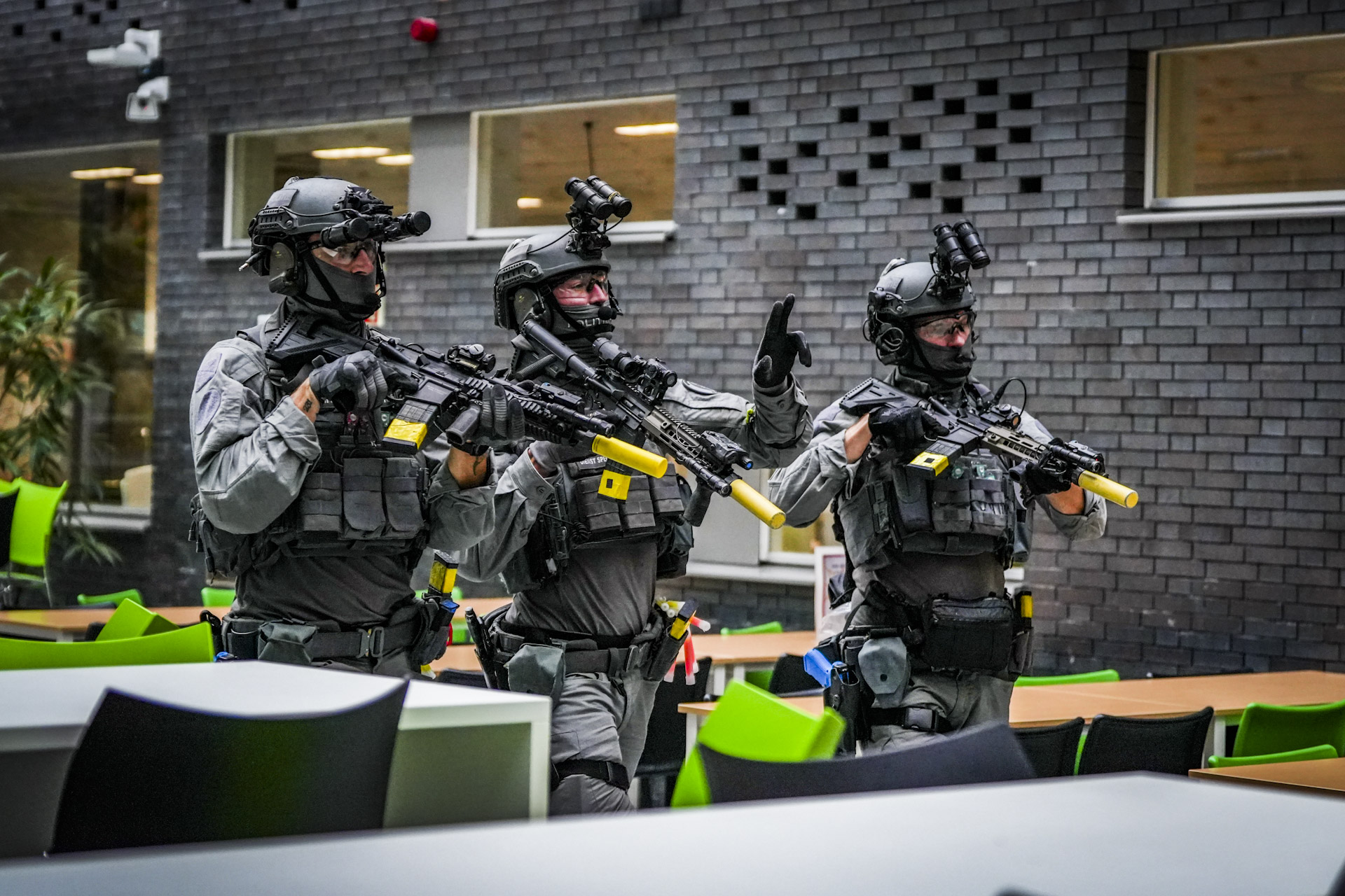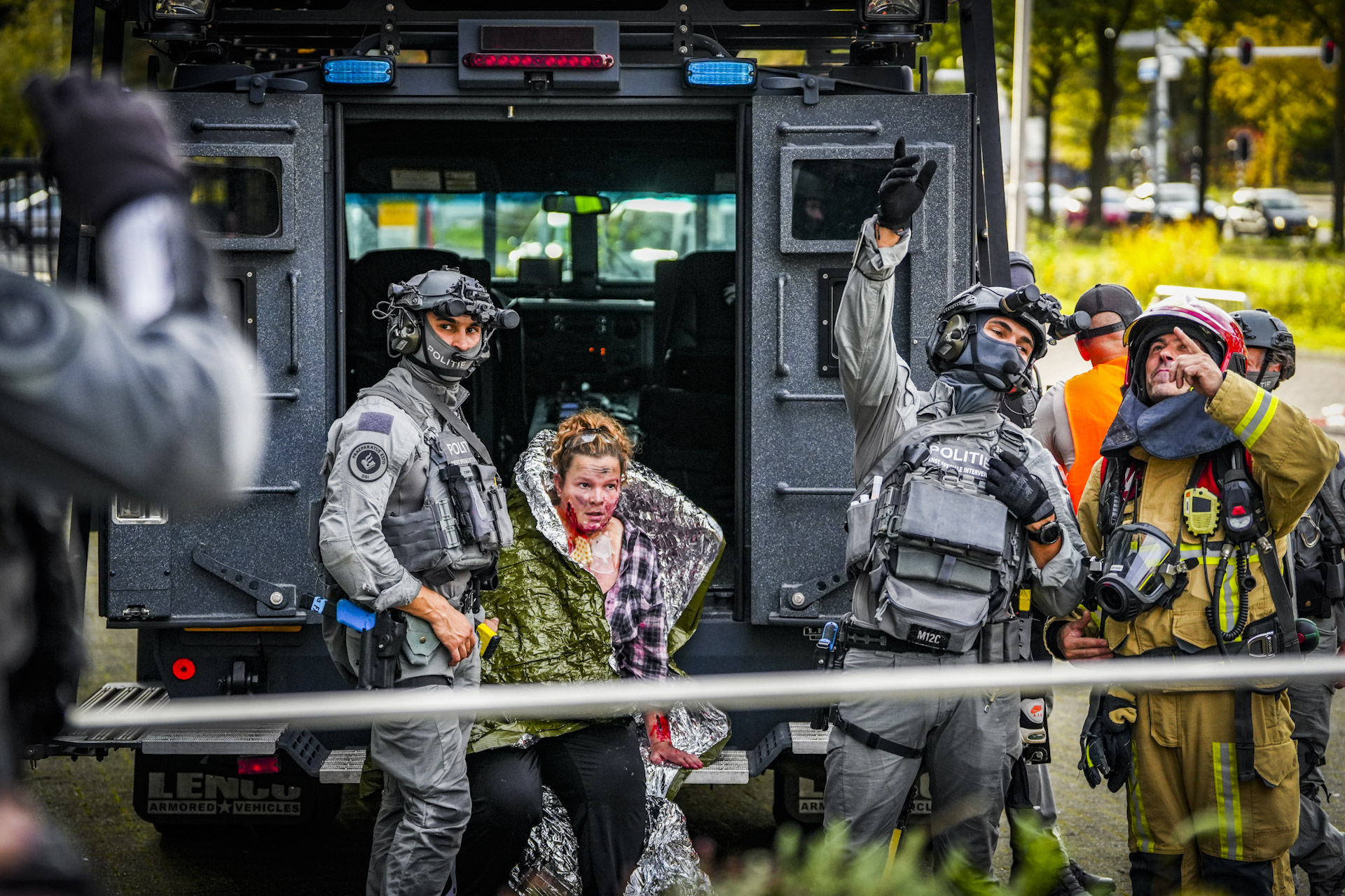 FOTOSERIE: Hulpdiensten simuleren gijzeling op school