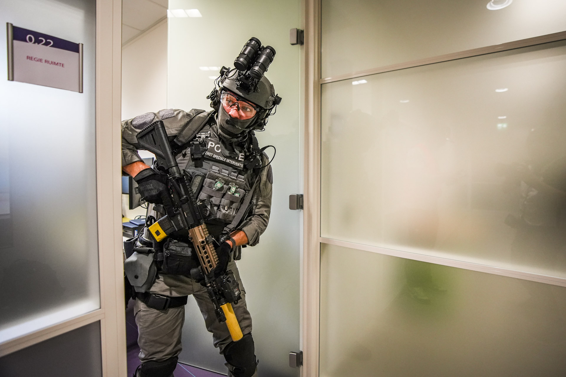 Om de situatie te de-escaleren, werd de DSI ingeschakeld, die met een helikopter en een pantserwagen ter plaatse kwam. Het team maakte gebruik van een touw om het dak van het gebouw te bereiken, waar zij explosieven gebruikten om een deur te openen.