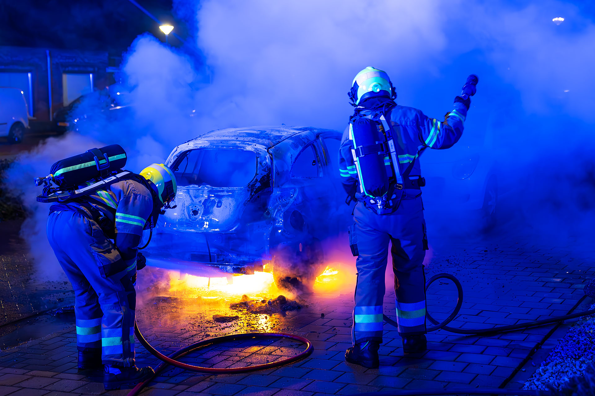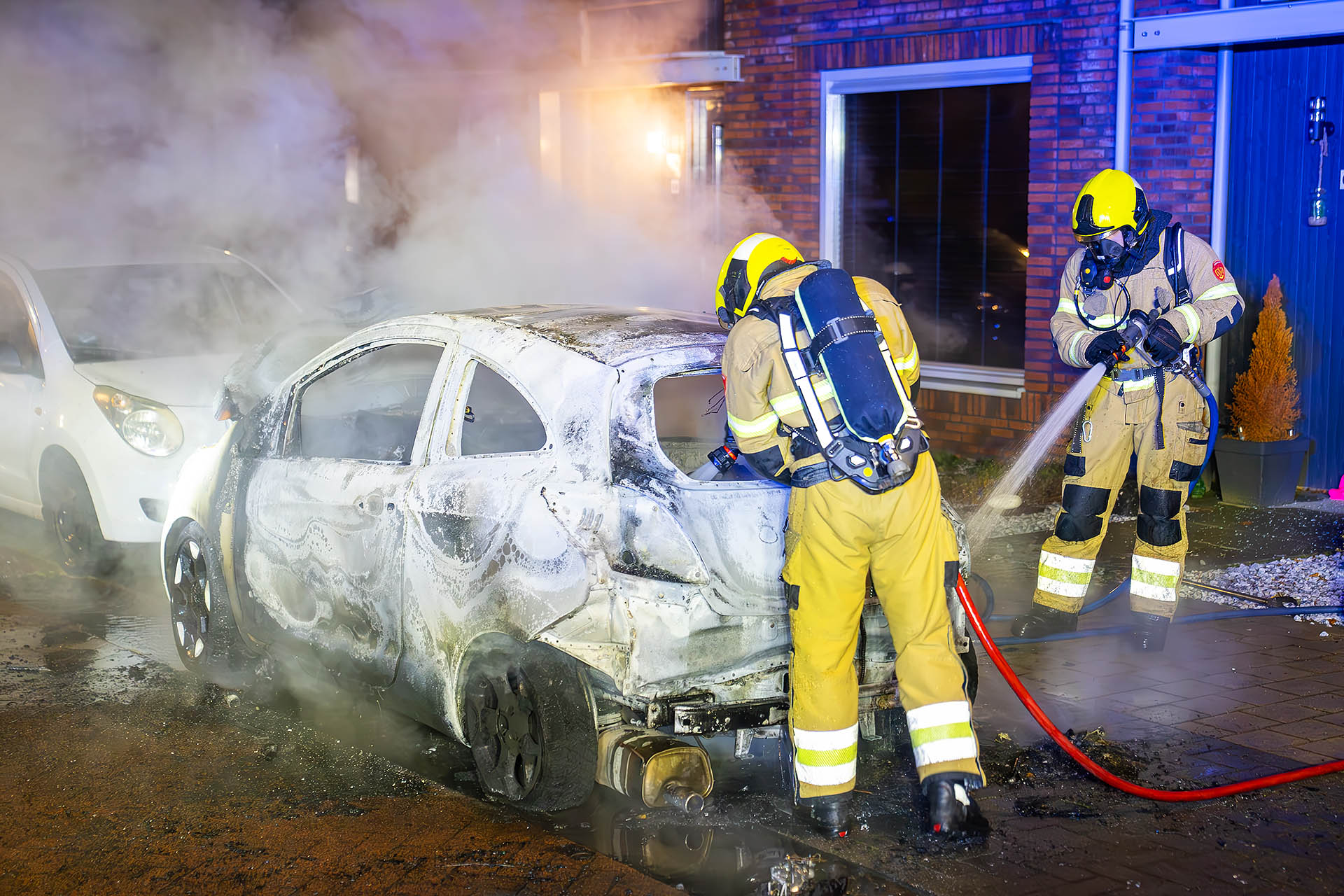 Auto in lichterlaaie na explosie, politie doet onderzoek