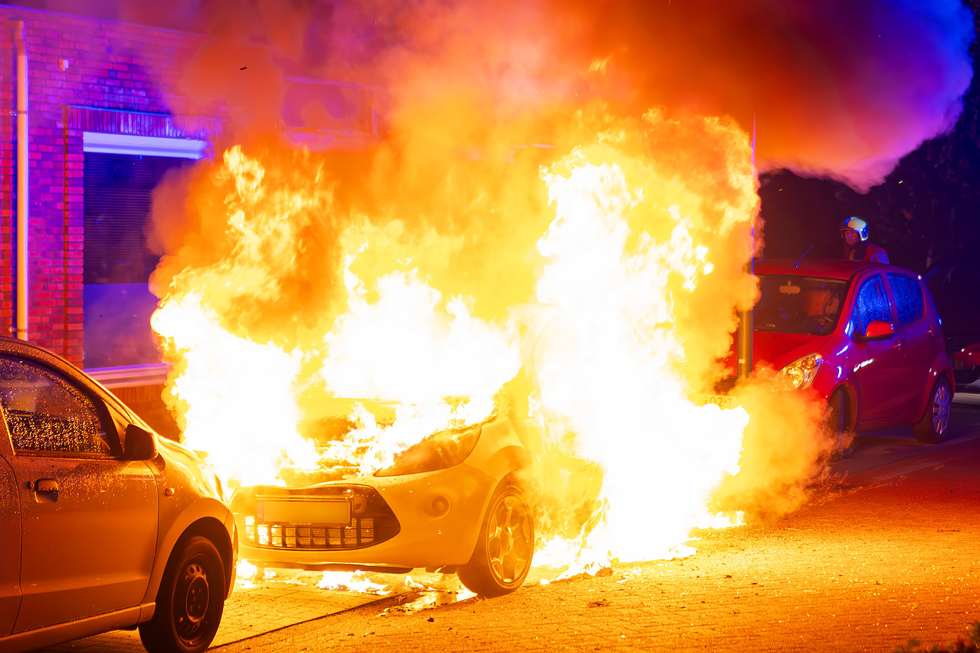 Auto in lichterlaaie na explosie, politie doet onderzoek