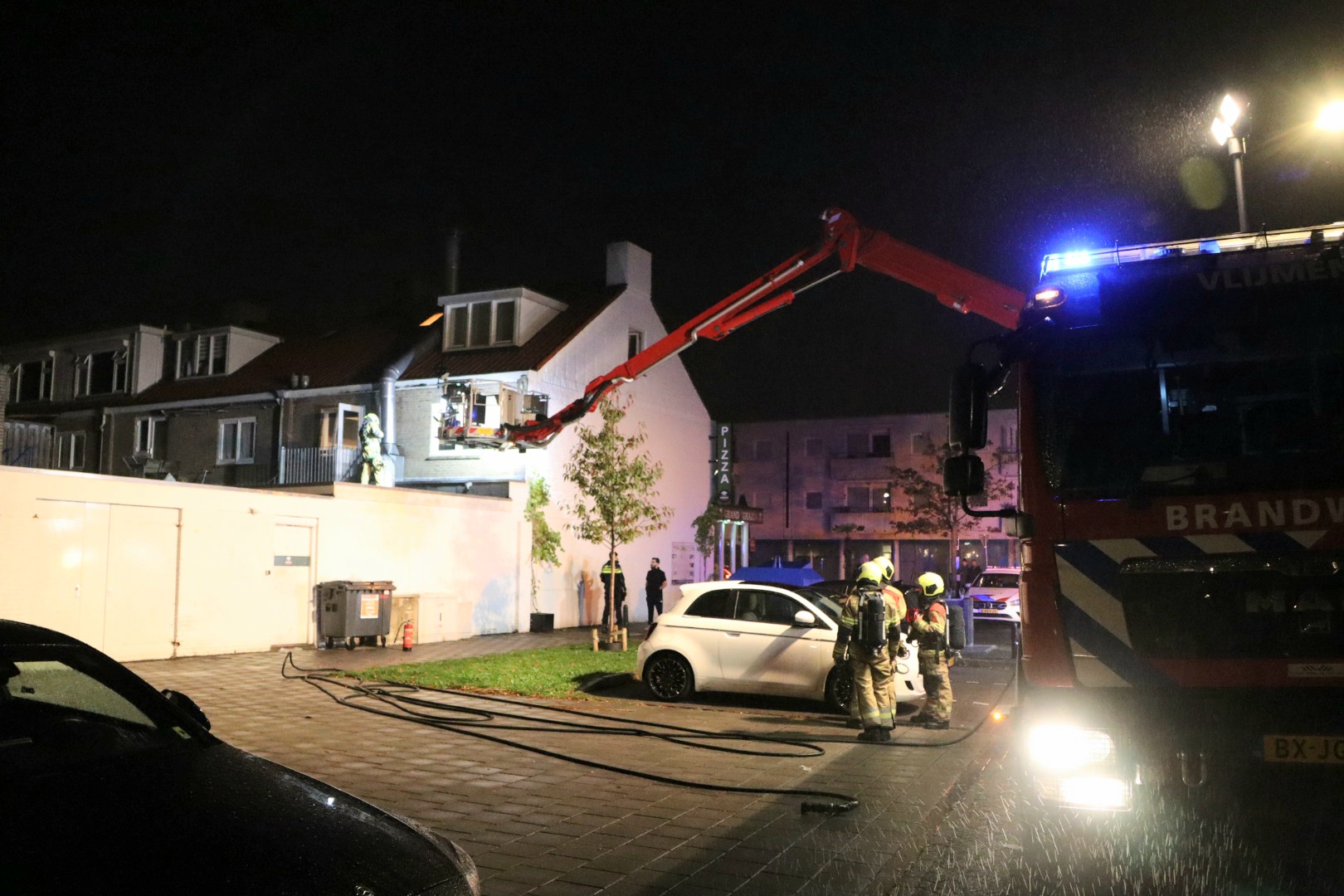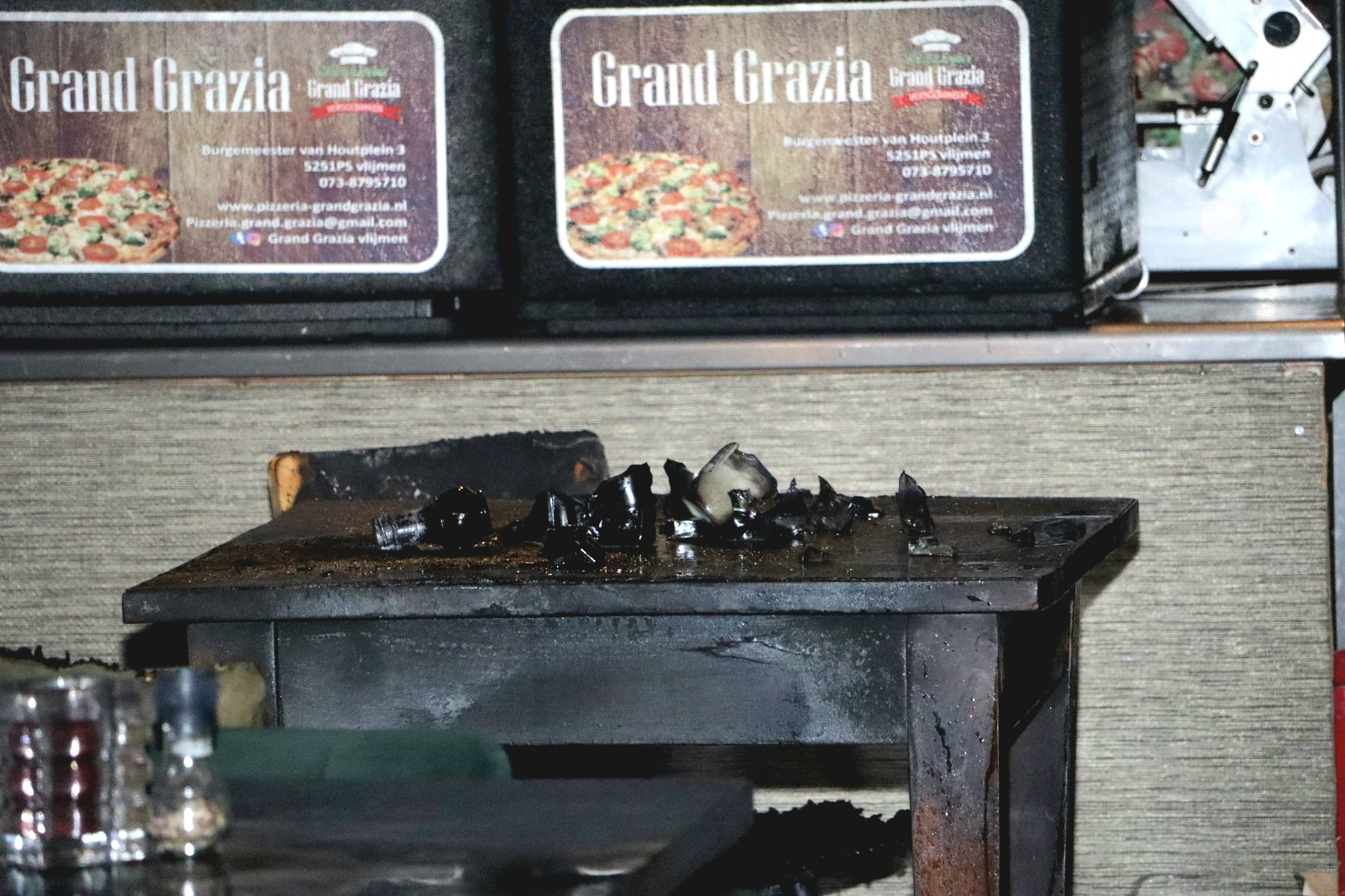 Geplaatst op 18 oktober 2024, om 08:50 uurVLIJMEN – In de nacht van donderdag op vrijdag brak rond 01:50 uur brand uit bij Pizzeria Grand Grazia aan het Burgemeester van Houtplein in Vlijmen. De bewoner van het pand boven de pizzeria ontdekte zowel de brand als twee daders die vermoedelijk via de achterzijde waren binnengedrongen en vervolgens vluchtten.