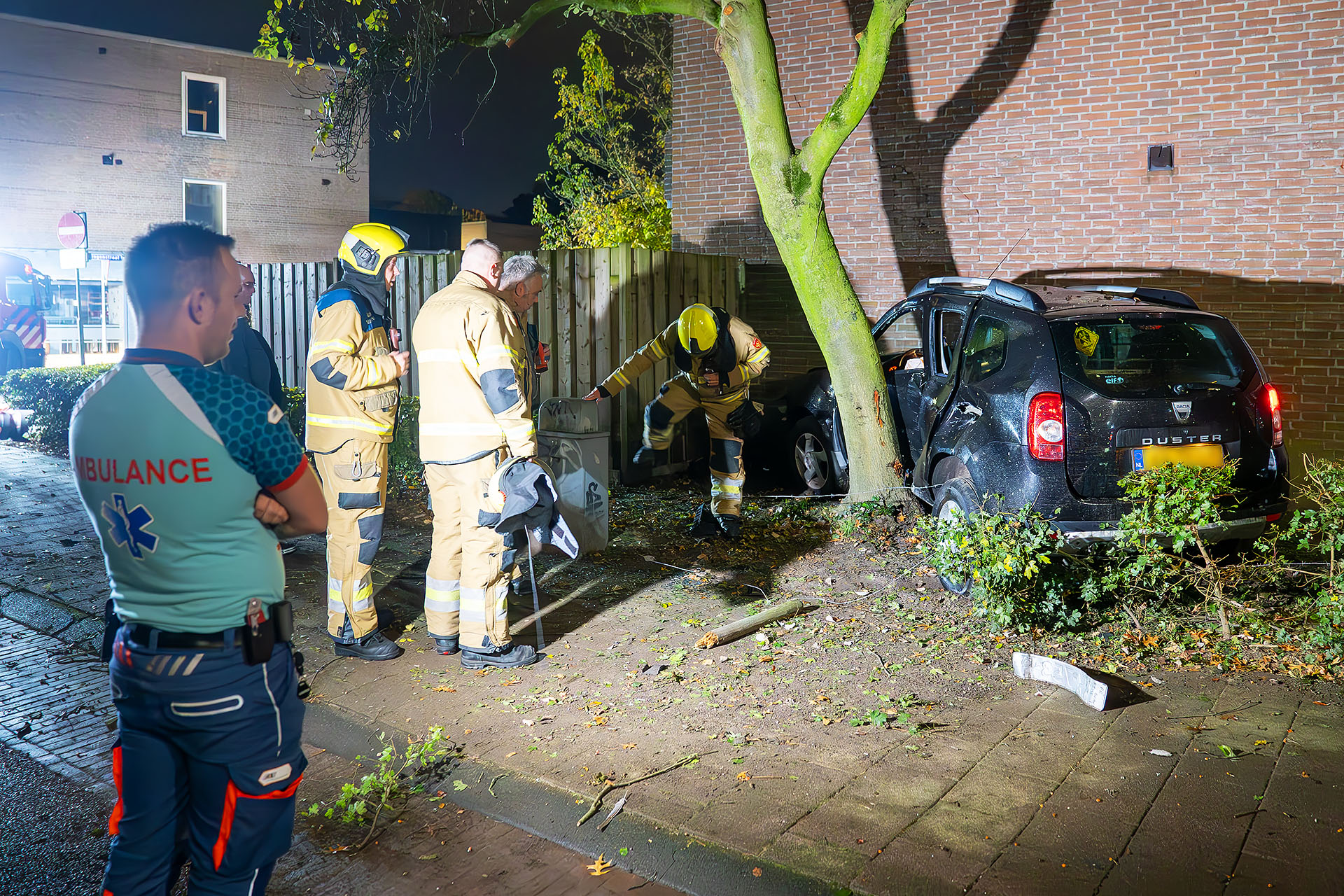Geplaatst op 18 oktober 2024, om 08:30 uurOSS – Donderdagavond laat ramde een automobiliste met haar Dacia Duster een appartementencomplex in Oss. Rond middernacht verloor ze de controle over het stuur op de Singel 1940-1945, reed door twee heggen, raakte een railing, en kwam uiteindelijk tegen de gevel van een appartementencomplex en een boom tot stilstand.