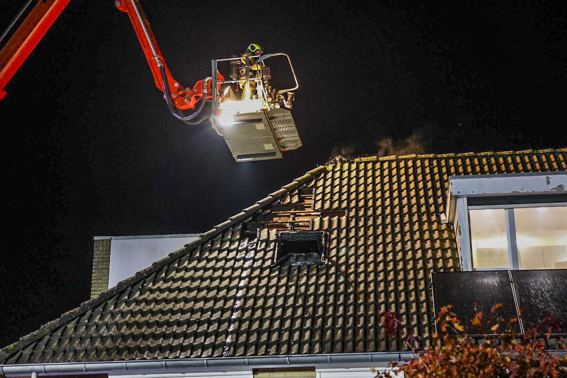 Geplaatst op 22 oktober 2024, om 20:51 uurEINDHOVEN – Dinsdagavond brak een felle brand uit op de zolder van een woning aan de Kiplinglaan in Eindhoven. Het vuur ontstond kort na 19.00 uur en sloeg snel door het dak, wat voor veel rookontwikkeling zorgde. Meerdere brandweervoertuigen, waaronder twee blusvoertuigen en een hoogwerker, werden ingezet om de brand te bestrijden.