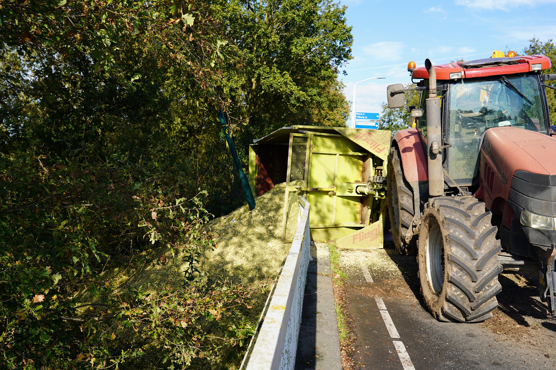 Het ongeval gebeurde toen een tractor met de kar een bocht maakte ter hoogte van de Lijndonk. Door nog onbekende oorzaak sloeg de kar om, waardoor een groot deel van de maïs op het talud terechtkwam.
