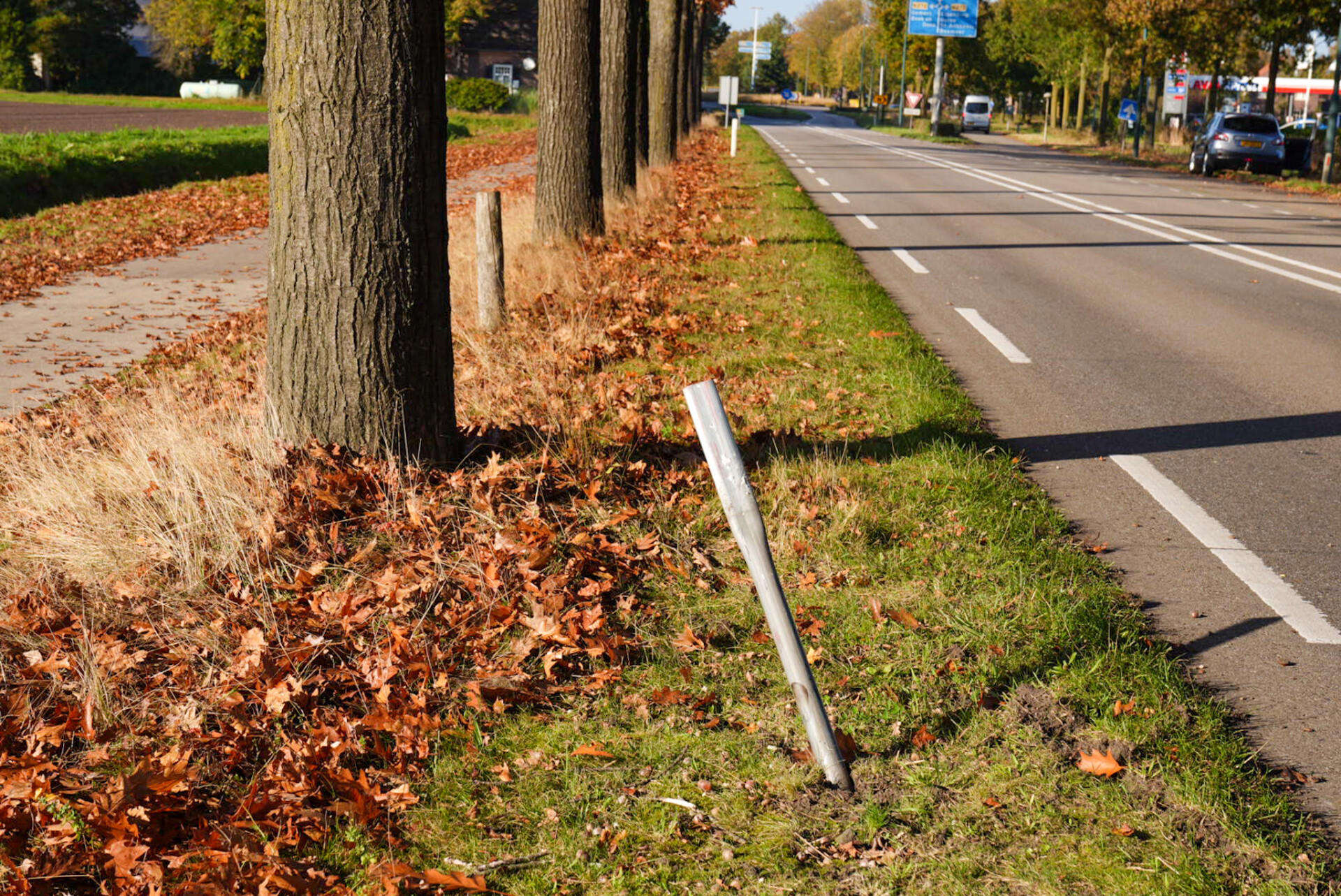 Hij kwam in botsing met een hectometerpaaltje en een auto, waarna hij viel. De man raakte gewond aan zijn schouder en werd met de ambulance naar het ziekenhuis gebracht. De auto liep lichte schade op en kon de weg zelfstandig vervolgen.