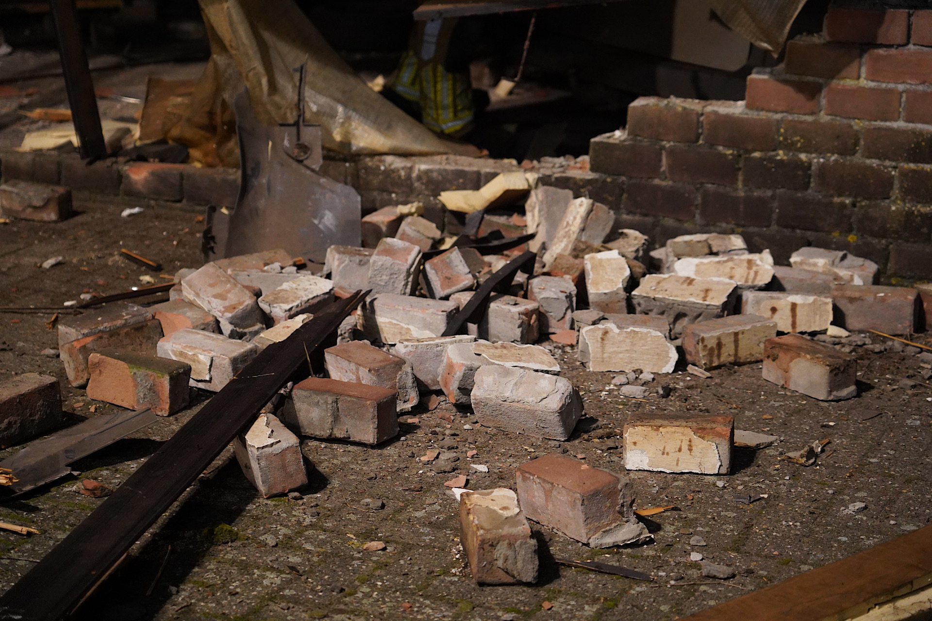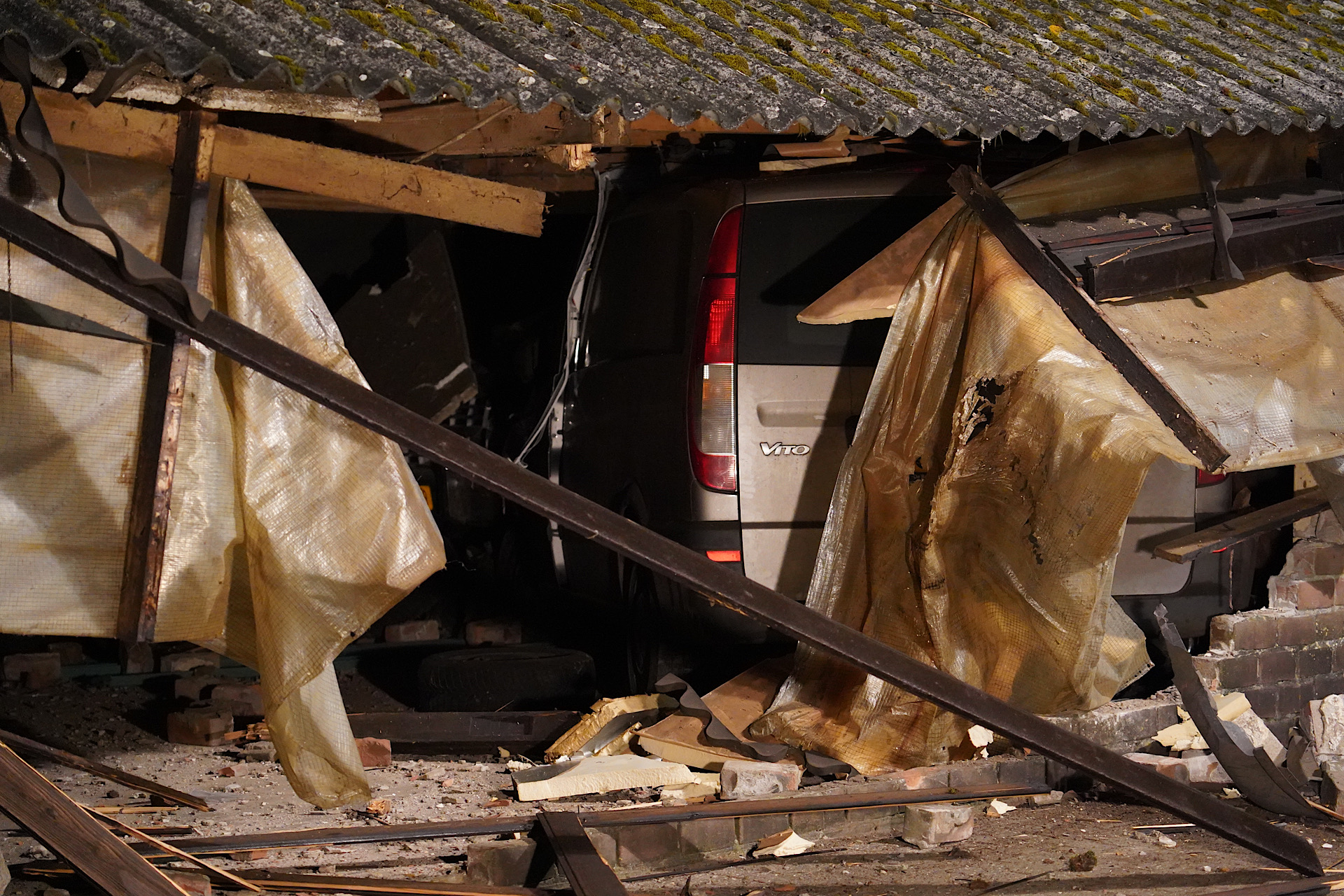 De brandweer werd opgeroepen om de situatie te beoordelen en om te controleren of er mogelijk nog andere personen in het voertuig zaten. Door de zware schade aan de schuur, die op instorten staat, heeft de brandweer de omgeving afgezet.