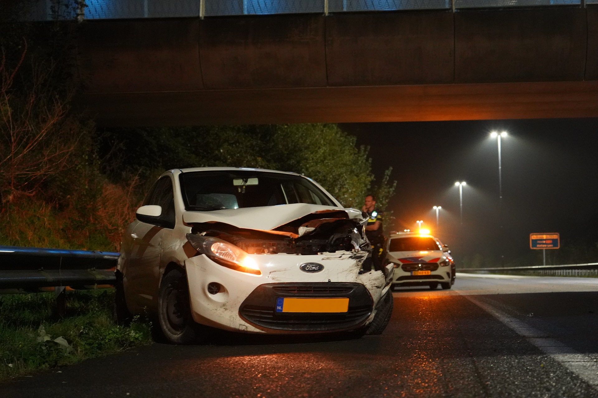 De vrouw is ter plaatse behandeld in een ambulance. De politie onderzoekt de oorzaak van het ongeval. Een bergingsbedrijf is ingeschakeld om de beschadigde auto af te voeren.