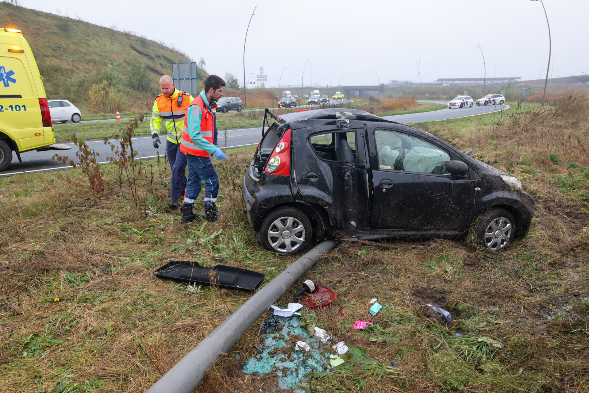 EINDHOVEN – Op de A50 bij Eindhoven is een vrouw gewond geraakt nadat haar auto in een bocht over de kop sloeg.