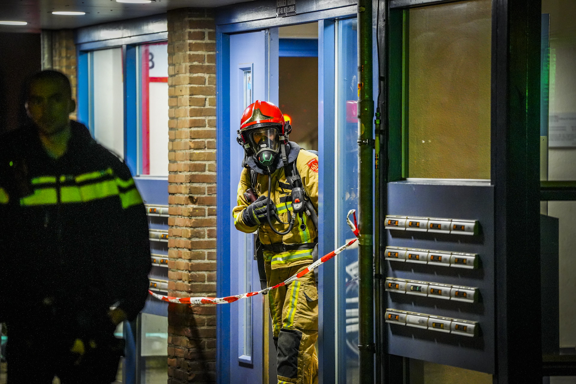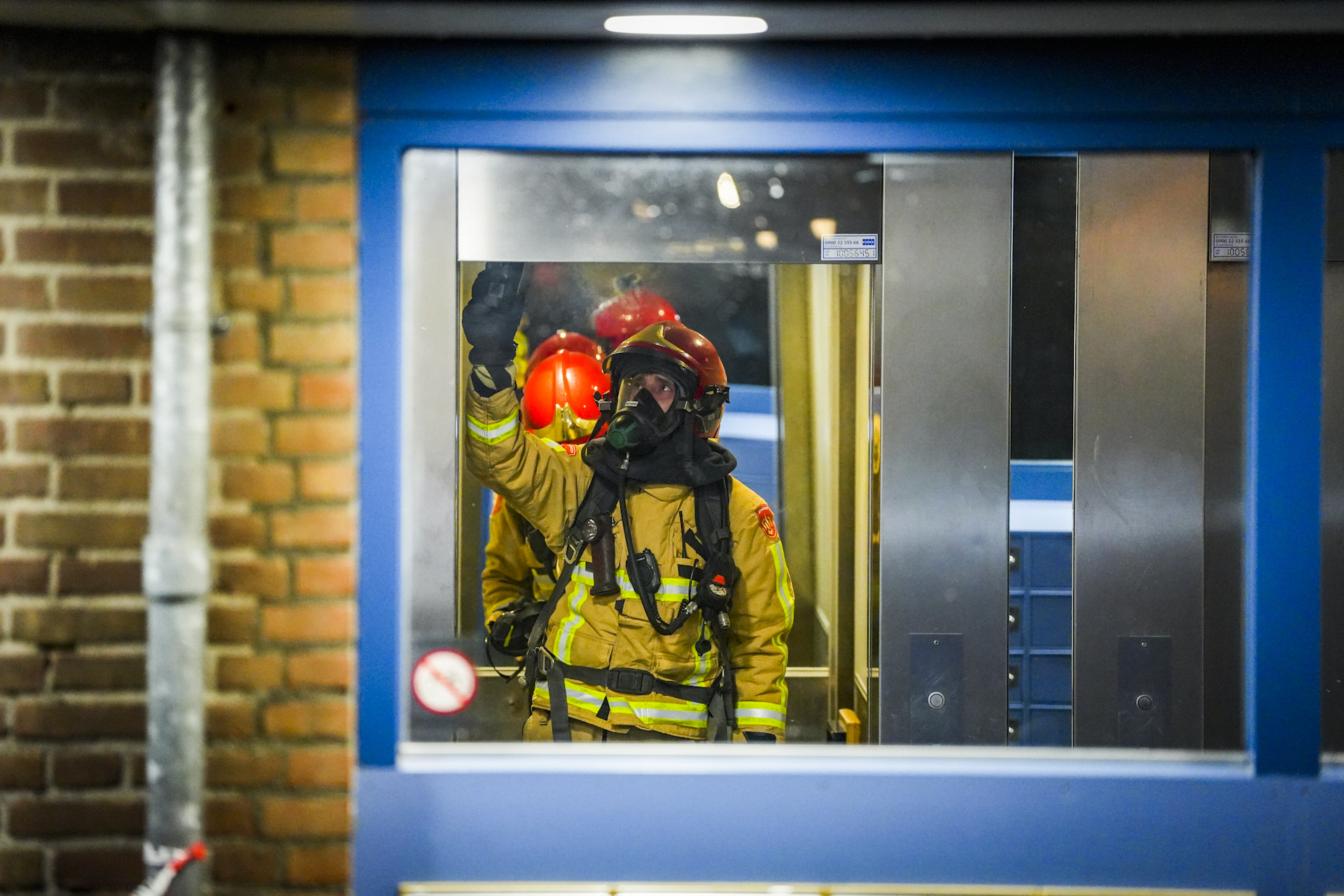 Inmiddels is het portiek weer vrijgegeven nadat de brandweer de lift heeft geventileerd.