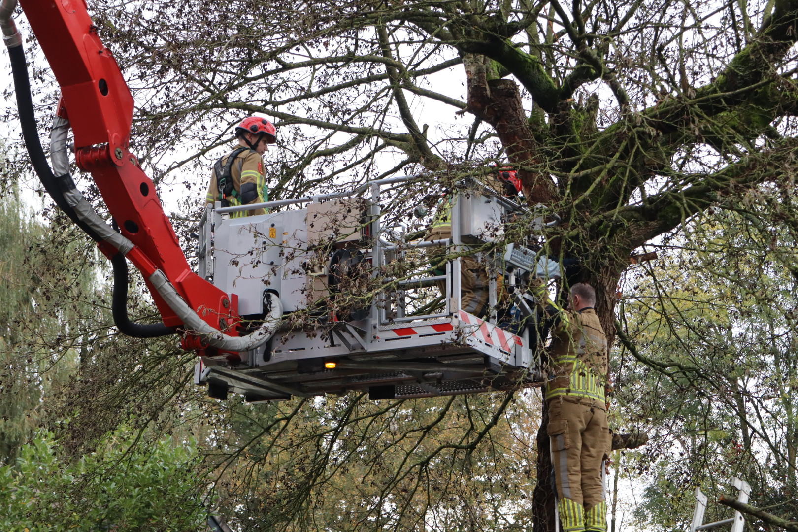 De man was bezig met snoeiwerkzaamheden toen hij vast kwam te zitten. De brandweer kwam ter plaatse met twee wagens, waaronder een hoogwerker. Met behulp van de hoogwerker werd de man veilig uit de boom gehaald en weer op de grond gezet.