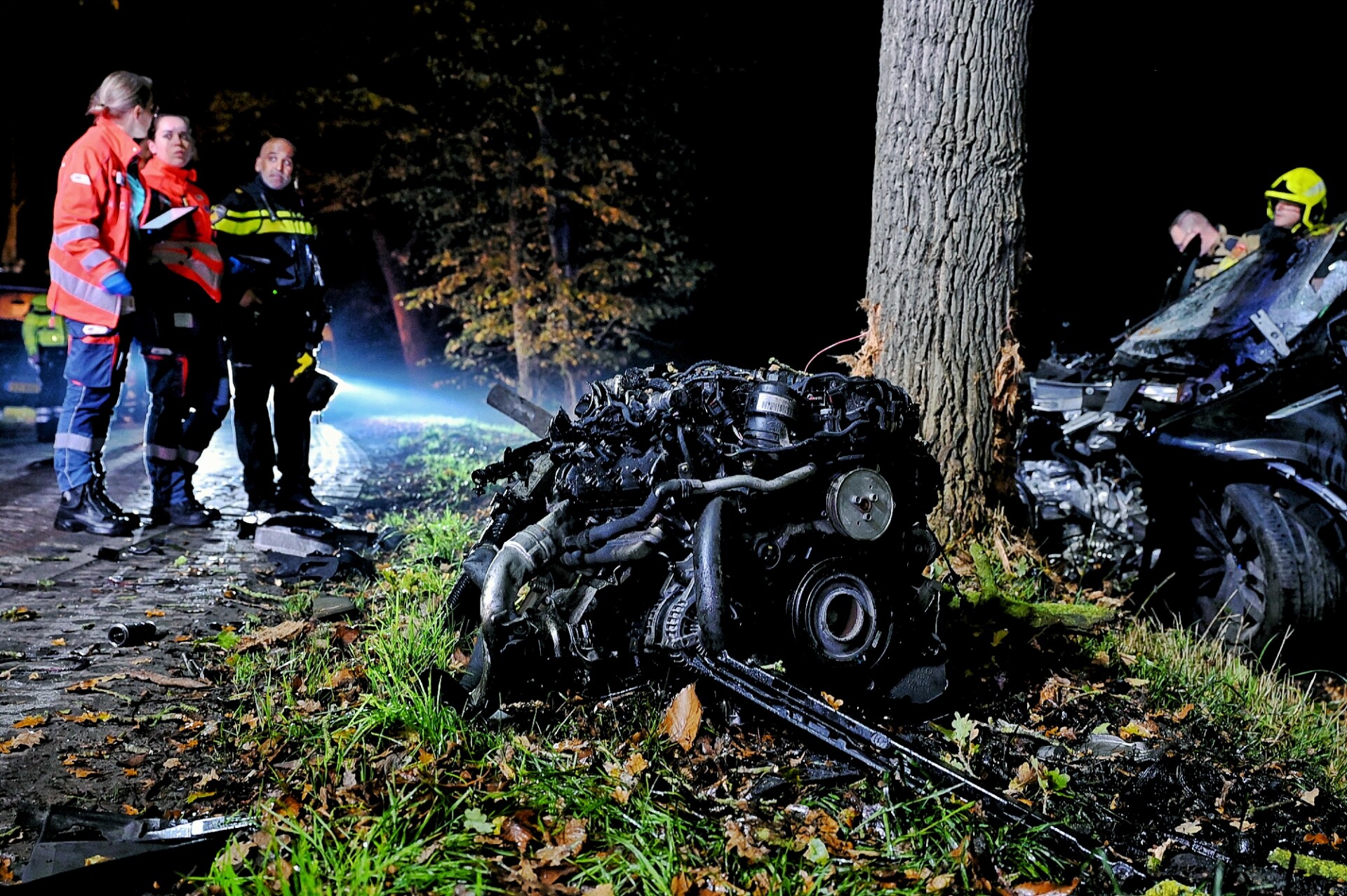 Twee gewonden bij ernstig ongeval, motorblok uit auto geslingerd