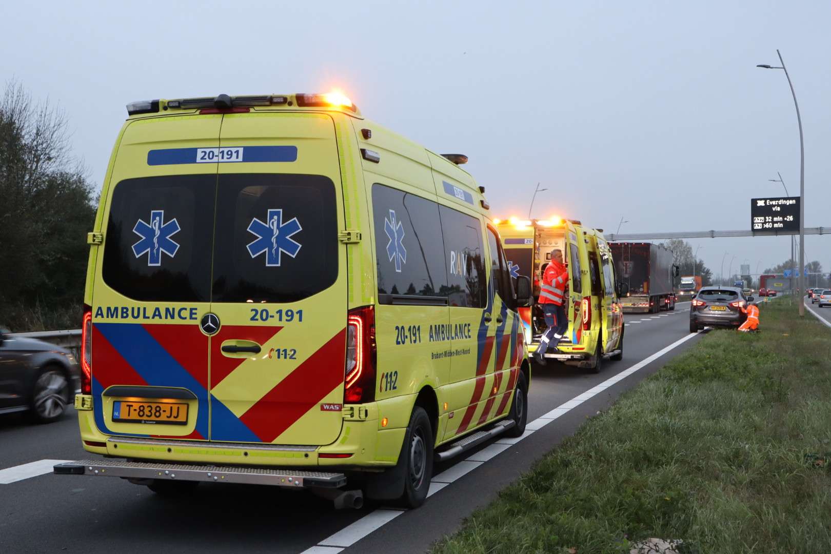 EΓ©n rijstrook werd afgesloten, wat leidde tot een lange file in de richting van Waalwijk. De oorzaak van het ongeval is nog onbekend, en de politie onderzoekt de toedracht.