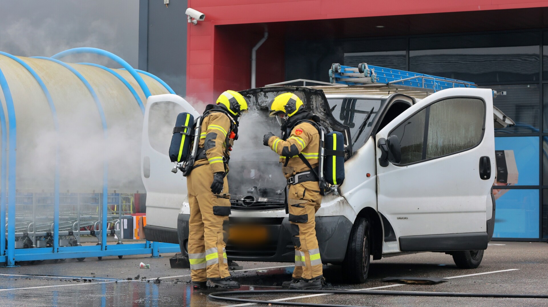 De brandweer werd rond 15.45 uur gealarmeerd, maar personeel van de winkel wist met een brandhaspel te voorkomen dat de bus volledig uitbrandde. De politie kwam ter plaatse en gaat uit van een technisch mankement als oorzaak van de brand.