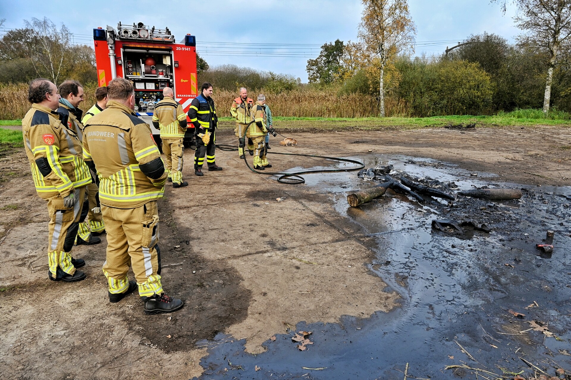 Bij aankomst van de brandweer was het vuur al grotendeels gedoofd. De brandweer heeft de resterende brandhaard geblust, en de politie was eveneens ter plaatse. Op de betonnen platen langs het water wordt regelmatig vuur gestookt.