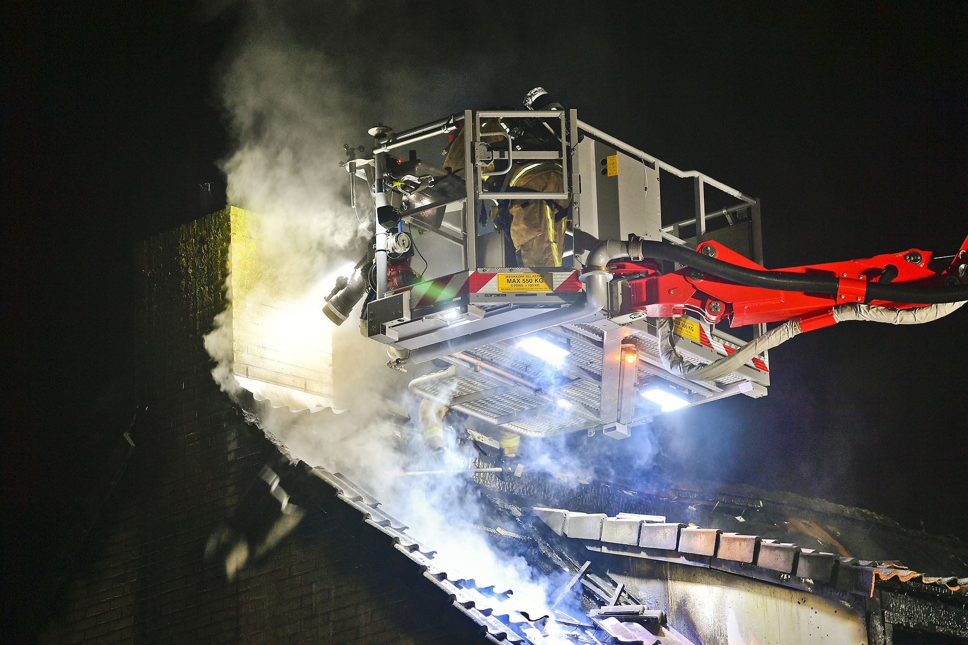 De bewoners werden gealarmeerd door een buurman die zijn hond uitliet en de rook opmerkte. Hij sloeg op de ramen om de bewoners te waarschuwen, waarna zij tijdig het huis konden verlaten. De brandweer zette een hoogwerker in om het vuur van bovenaf te bestrijden en verwijderde dakpannen om de vlammen onder controle te krijgen.