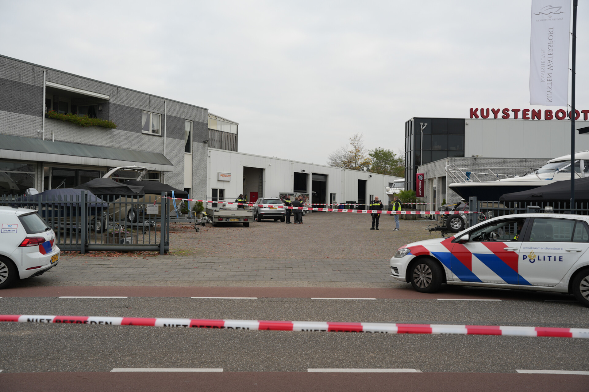Specialisten zijn ter plaatse om onderzoek te doen in het drugslab. Het terrein is afgesloten en wordt bewaakt om de situatie onder controle te houden.