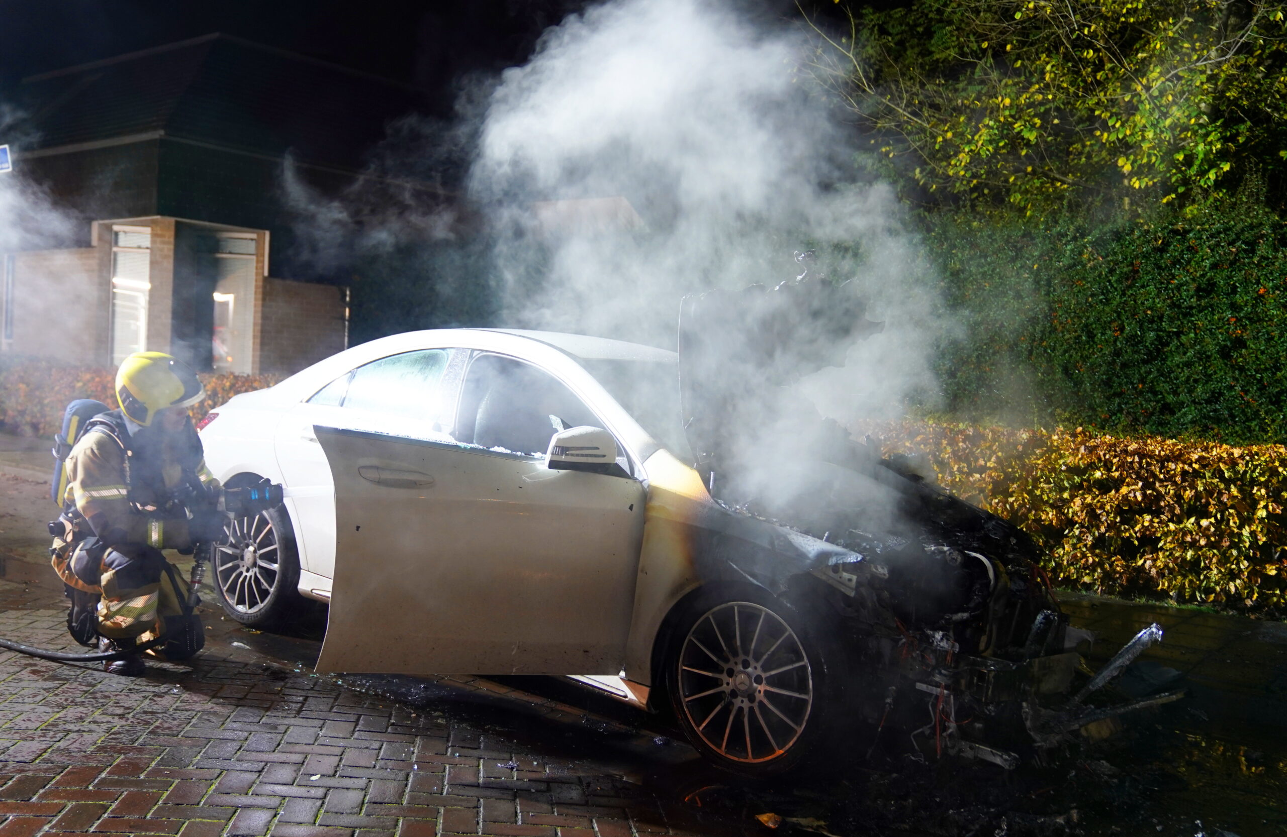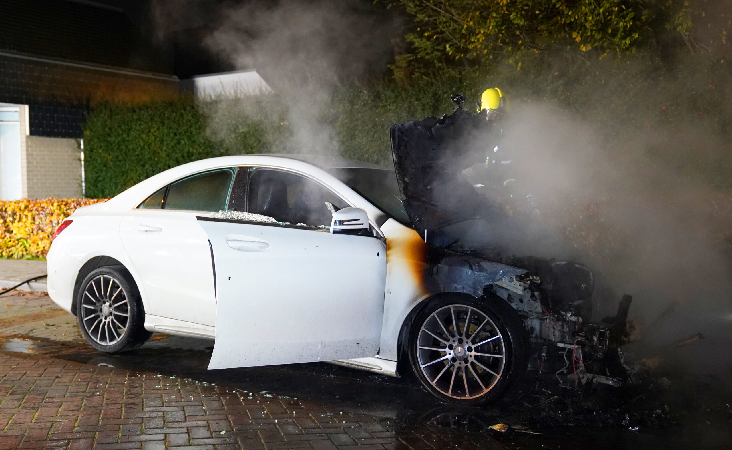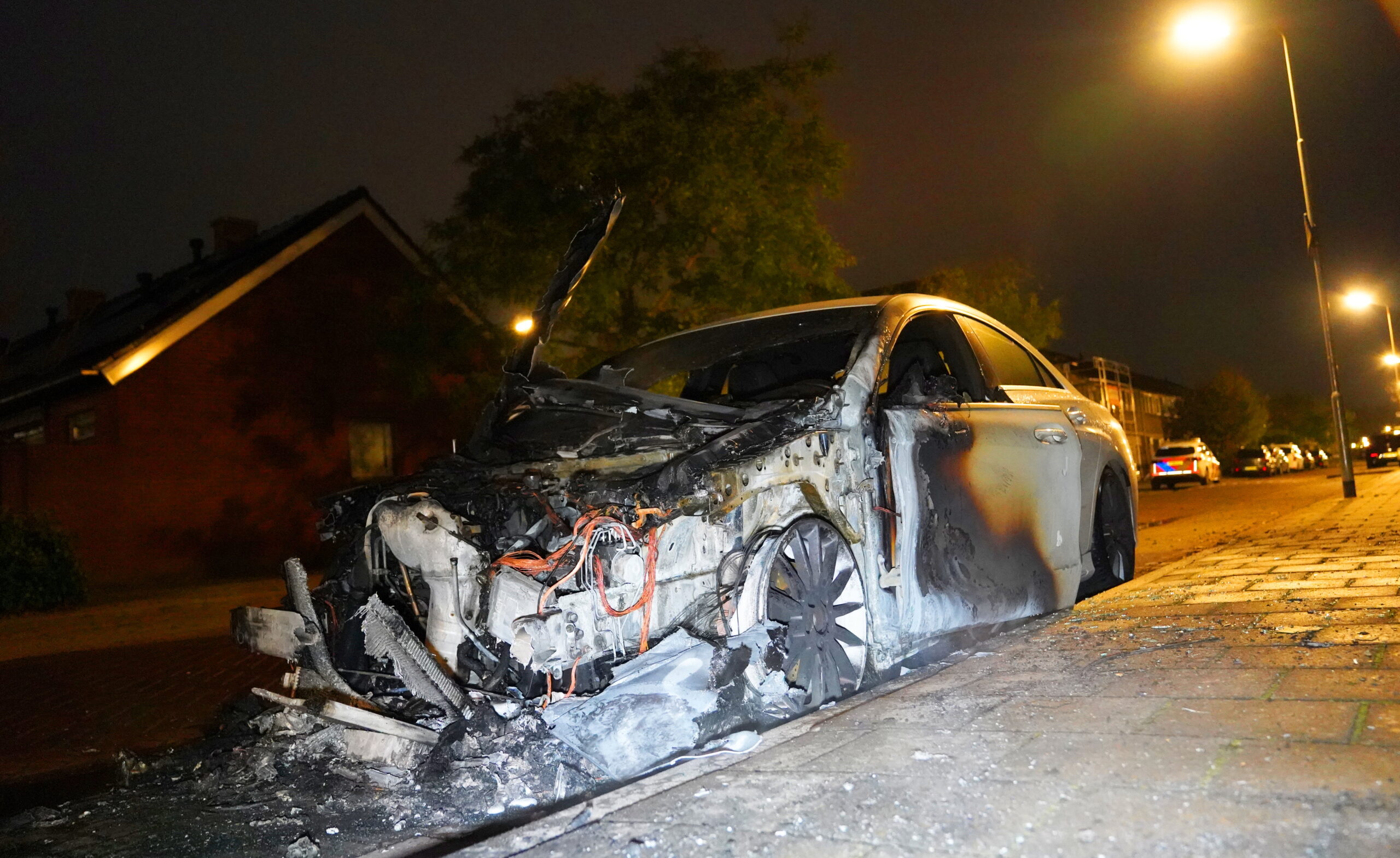Een buurtbewoner ontdekte de brand na een harde klap en belde 112. De politie onderzoekt de zaak, mede omdat de eigenaar van de auto in de dakdekkersbranche werkt. Eerder deze week werden al verdachten aangehouden in verband met de zogenoemde dakdekkersoorlog.