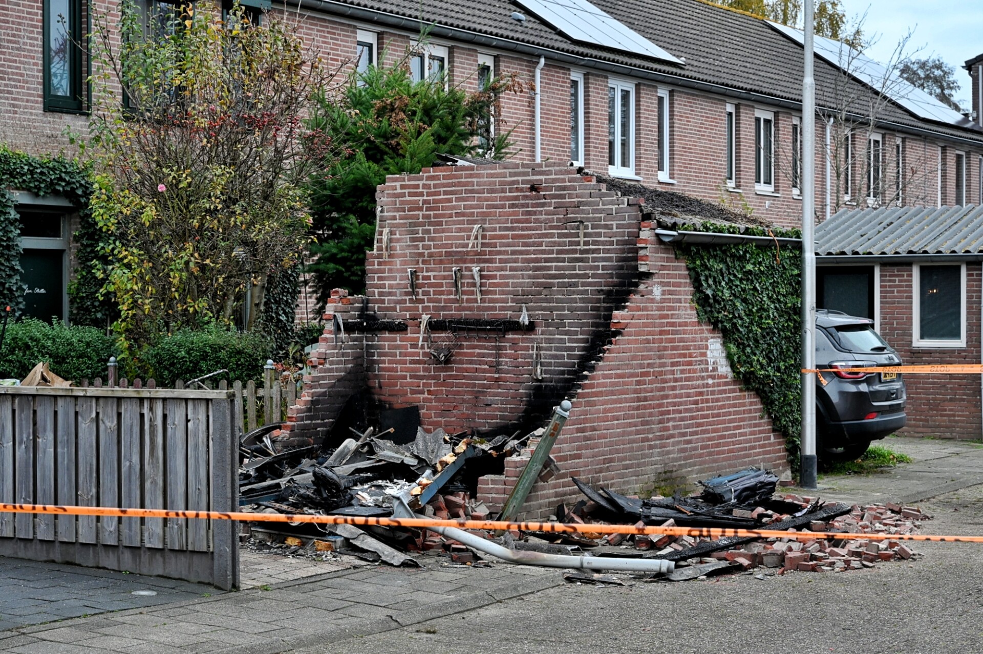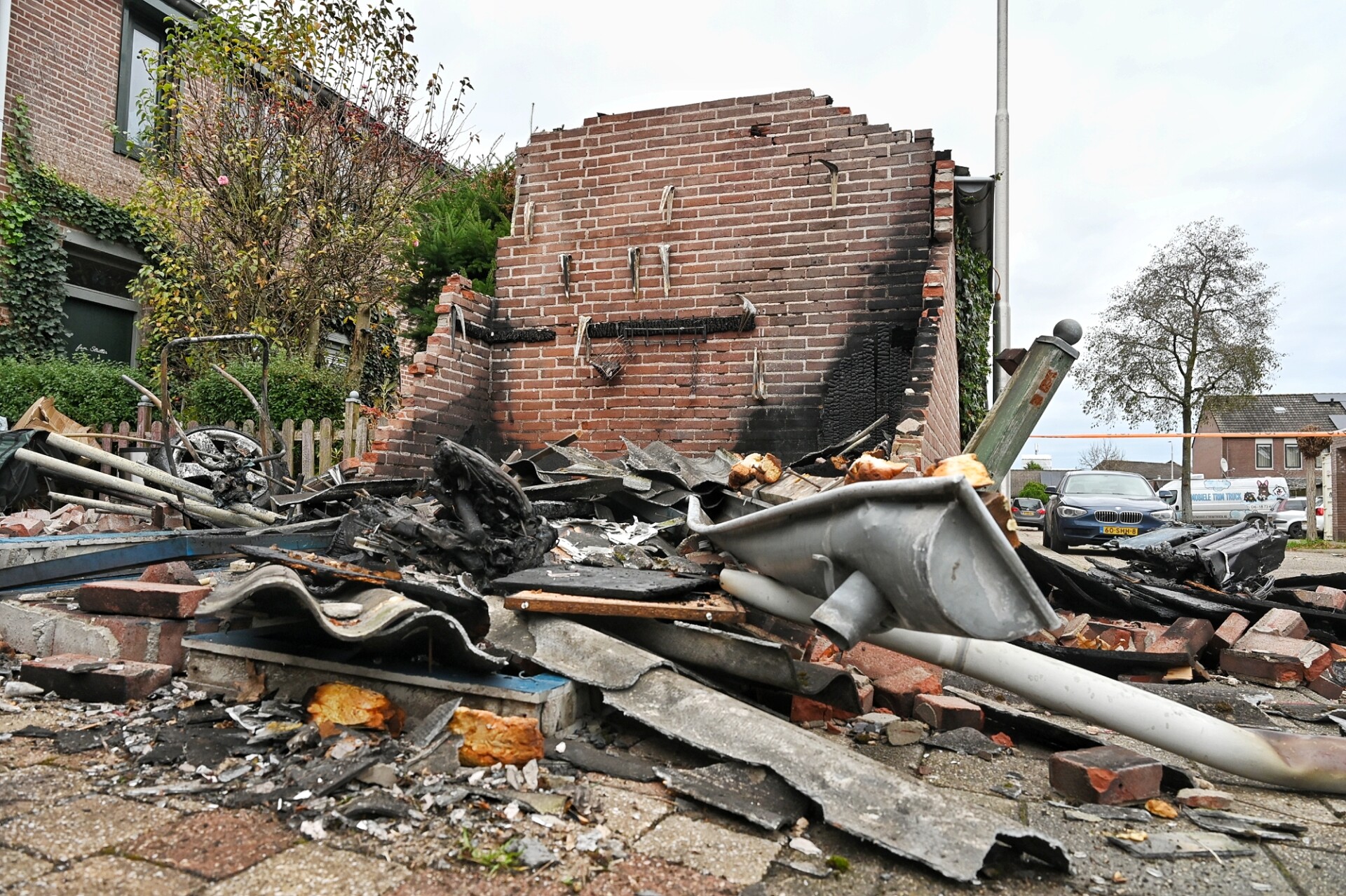 Door de ontploffing ontstonden scheuren in de fundering, waardoor de schuur op instorten stond. De brandweer brak het schuurtje af en stuitte daarbij op asbest. De omgeving werd afgezet met lint.