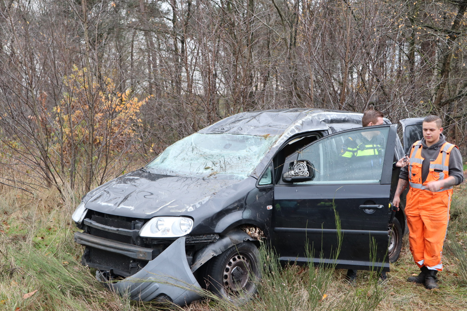 Bestelbus slaat over de kop, bestuurder aangehouden