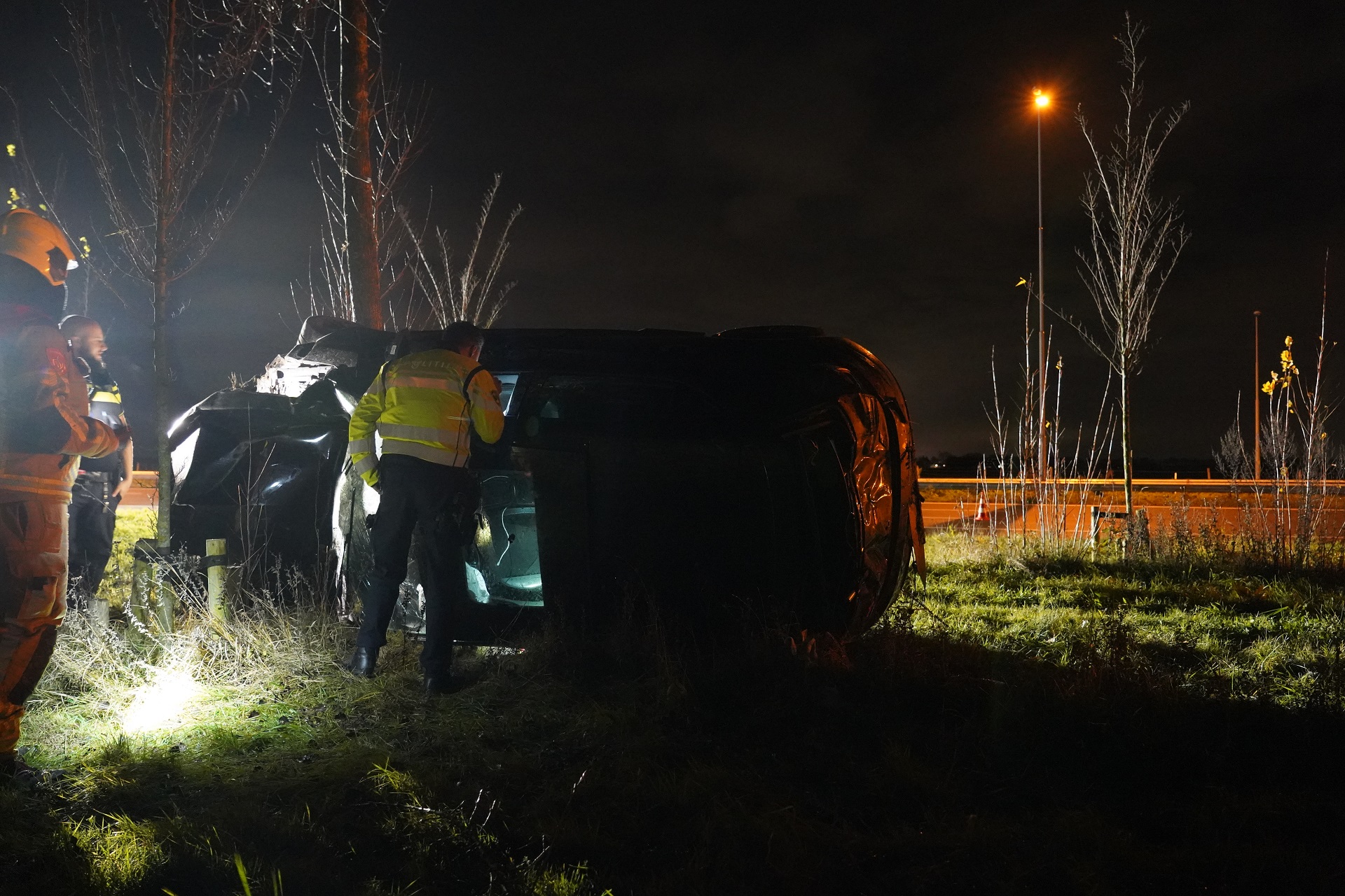 Hulpdiensten kregen rond 02.00 uur de melding. De bestuurder raakte gewond en is met spoed naar het ziekenhuis gebracht. In de omgeving van het wrak werd nog gezocht naar mogelijke andere inzittenden, maar niemand werd aangetroffen.