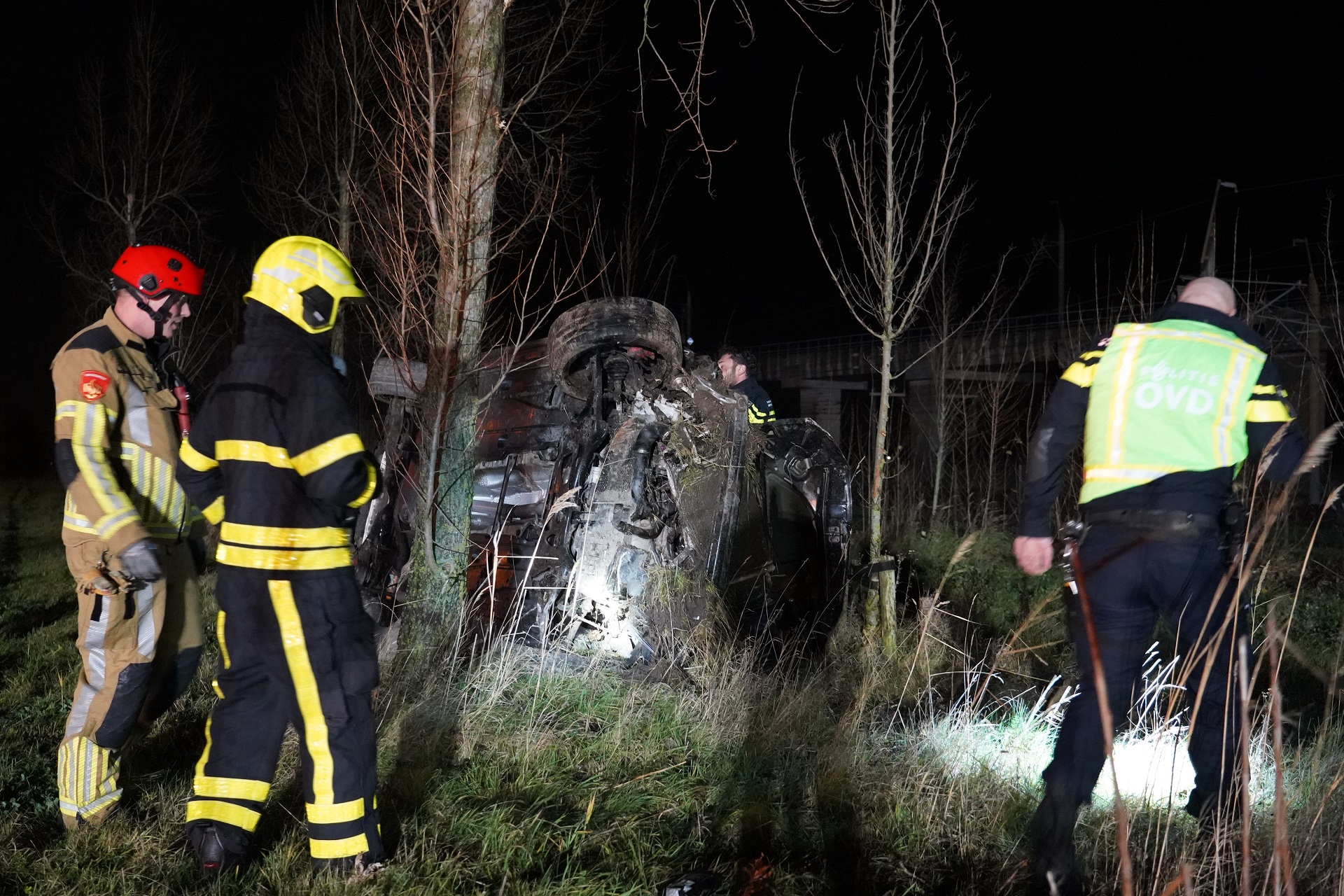 Hulpdiensten kregen rond 02.00 uur de melding. De bestuurder raakte gewond en is met spoed naar het ziekenhuis gebracht. In de omgeving van het wrak werd nog gezocht naar mogelijke andere inzittenden, maar niemand werd aangetroffen.